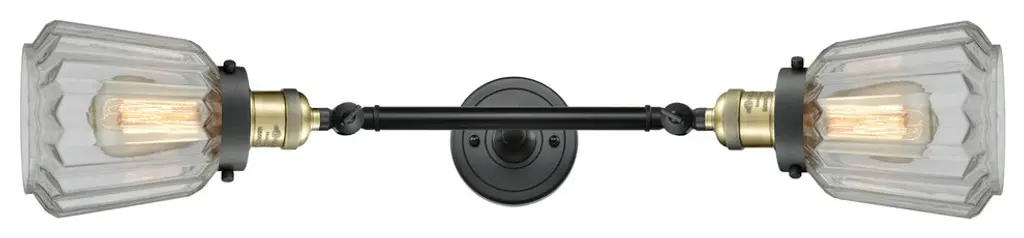 INNOVATIONS LIGHTING 208L-BK-G173-LED Fulton 2 Light Bath Vanity Light part of the Franklin Restoration Collection. The Fulton 2 Light Bath Vanity Light is part of the Franklin Restoration Collection.Solid Brass 180 Degree Adjustable Swivels with internal teeth that lock in at 5 degree intervals. Collection: Franklin Restoration. Material: Steel, Cast Brass, Glass. Metal Finish(Body): Matte Black. Metal Finish(Canopy/Backplate): Matte Black. Dimension(in): 6.75(W) x 22.5(H) x 10(Ext). Bulb: (2)3.5 Watt LED Vintage Medium Base Bulb Included,Dimmable. Color Temperature: 2700. Color Rendering Index(CRI): 82. Lumens): 350. Voltage: 120. Glass: Plated Smoke Fulton/Colorful. Shade Shape: Cone. Shade Material: Glass. Shade Size(in): 6.75 X 5.25. Shade Fitter Measurement: 3.25 inch Fitter. Canopy Dimension(in): 4.5. Backplate Dimension(in): 4.5x0.75. Solid Brass 180 Degree Adjustable Swivels with internal teeth that lock in at 5 degree intervals. Fixtures can be hung Horizontally or Vertically. Fixture can be hung with bulbs facing up or down as a Wall Mount. UL/CUL Damp Rated. Warranty: 2 Year Finish, Lifetime Electrical.