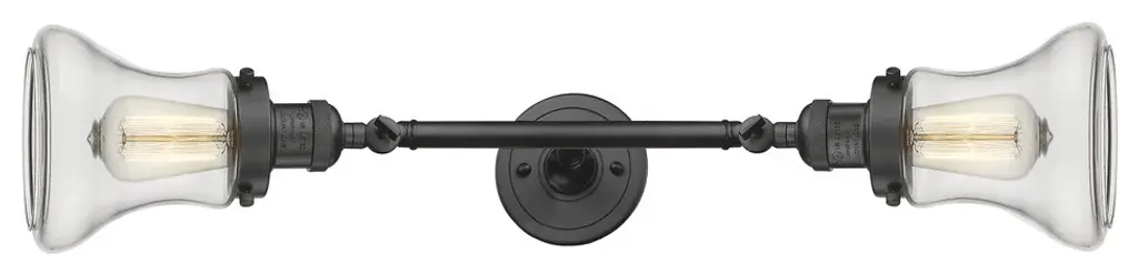 INNOVATIONS LIGHTING 208L-OB-G194-LED Bellmont 2 Light Bath Vanity Light part of the Franklin Restoration Collection. The Bellmont 2 Light Bath Vanity Light is part of the Franklin Restoration Collection.Solid Brass 180 Degree Adjustable Swivels with internal teeth that lock in at 5 degree intervals. Collection: Franklin Restoration. Material: Steel, Cast Brass, Glass. Metal Finish(Body): Oil Rubbed Bronze. Metal Finish(Canopy/Backplate): Oil Rubbed Bronze. Dimension(in): 6.25(W) x 23.75(H) x 10(Ext). Bulb: (2)3.5 Watt LED Vintage Medium Base Bulb Included,Dimmable. Color Temperature: 2700. Color Rendering Index(CRI): 82. Lumens): 350. Voltage: 120. Glass: Seedy Bellmont/Seeded. Shade Shape: Bell. Shade Material: Glass. Shade Size(in): 6 X 6.25. Shade Fitter Measurement: 3.25 inch Fitter. Canopy Dimension(in): 4.5. Backplate Dimension(in): 4.5x0.75. Solid Brass 180 Degree Adjustable Swivels with internal teeth that lock in at 5 degree intervals. Fixtures can be hung Horizontally or Vertically. Fixture can be hung with bulbs facing up or down as a Wall Mount. UL/CUL Damp Rated. Warranty: 2 Year Finish, Lifetime Electrical.