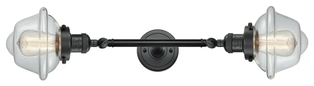 INNOVATIONS LIGHTING 208L-PN-G532 Small Oxford 2 Light Bath Vanity Light part of the Franklin Restoration Collection. The Small Oxford 2 Light Bath Vanity Light is part of the Franklin Restoration Collection.Solid Brass 180 Degree Adjustable Swivels with internal teeth that lock in at 5 degree intervals. Collection: Franklin Restoration. Material: Steel, Cast Brass, Glass. Metal Finish(Body): Polished Nickel. Metal Finish(Canopy/Backplate): Polished Nickel. Dimension(in): 7.5(W) x 22.25(H) x 9(Ext). Bulb: (2)100 Medium Base Vintage Bulb recommended(Not Included). Voltage: 120. Glass: Clear Small Oxford/Transparent. Shade Shape: Schoolhouse. Shade Material: Glass. Shade Size(in): 7.5 X 5.75. Shade Fitter Measurement: 3.25 inch Fitter. Canopy Dimension(in): 4.5. Backplate Dimension(in): 4.5x0.75. Solid Brass 180 Degree Adjustable Swivels with internal teeth that lock in at 5 degree intervals. Fixtures can be hung Horizontally or Vertically. Fixture can be hung with bulbs facing up or down as a Wall Mount. UL/CUL Damp Rated. Warranty: 2 Year Finish, Lifetime Electrical.