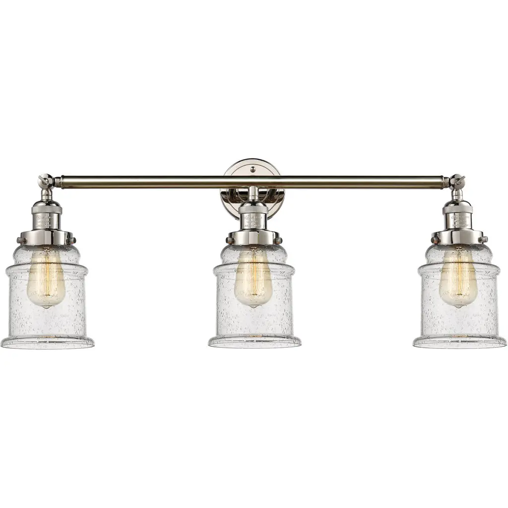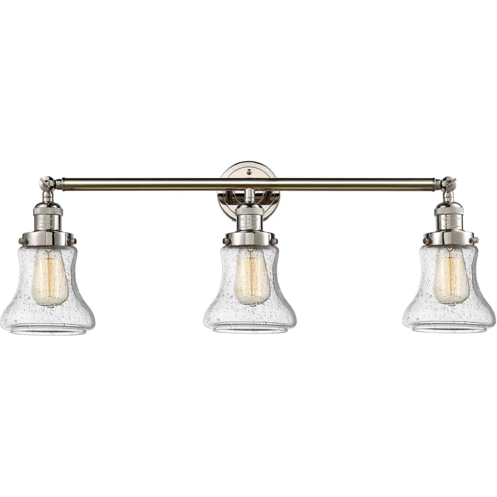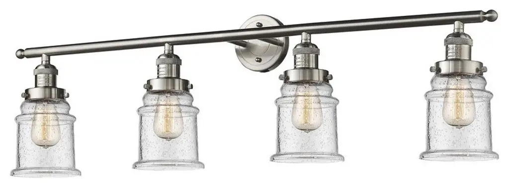 INNOVATIONS LIGHTING 215-PN-G194 4 Light Bathroom FixtureBellmont 4-100 watt 42.25 inch Polished Nickel Bathroom Fixture with Seedy glassCollection: BellmontMetal Finish: Polished NickelMaterial: Cast Brass, GlassGlass Color: Polished NickelGlass/Metal Shade Color: SeedyGlass/Shade Description: Seedy BellmontDimension(in): 42.25(W) x 10.5(H) x 7.625(Ext)Glass Shade Dimension(in): 6.25 X 6.5Shade Fitter Size: 3.25 inch FitterCanopy Dimension(in): 4.5(Dia)Backplate Dimension(in): 4.5(Dia) x 0.75(Depth)Bulb: (4)Medium Base Vintage Bulb(Not Included)Max Watts Per Socket: 100UL Certification Type: Damp LocationETL Certification Type: Damp LocationReversible(can be hung with bulbs facing up or down): Yes