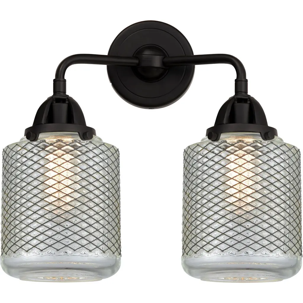 INNOVATIONS LIGHTING 288-1W-BK-G262-LED Stanton 1 Light 6 inch Sconce. Style: Transitional, Industrial, Restoration-Vintage. Collection: Nouveau 2. Material: Steel, Cast Brass, Glass. Metal Finish(Body): Matte Black. Metal Finish(Canopy/Backplate): Matte Black. Dimension(in): 12.125(H) x 6(W) x 7.25(Ext). Bulb: (1)3.5 Watt LED Vintage Medium Base Bulb Included. Voltage: 120. Dimmable: Yes. Color Temperature: 2700. CRI: 82. Lumens: 350. Maximum Wattage Per Socket: 100. Glass Shade Description: Vintage Wire Mesh Stanton. Shade Material: Glass. Glass or Metal Shade Color: Clear Wire Mesh. Glass Type: Transparent . Shade Size Dimension(in): 6(Dia) x 7.75(H). Shade Fitter Measurement: 3.25 inch Fitter. Canopy Dimension(in): 4.5(Dia). Backplate Dimenison(in): 4.5(Dia) x 0.75(Depth). UL & ETL Certification: Damp Location.