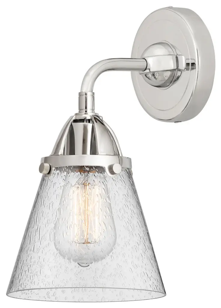 Innovations Lighting 288-1W-PC-G314 Dover 1 Light 4.5 inch Sconce. Style: Transitional, Industrial, Restoration-Vintage. Collection: Nouveau 2. Material: Steel, Cast Brass, Glass. Metal Finish(Body): Polished Chrome. Metal Finish(Canopy/Backplate): Polished Chrome. Dimension(in): 10.875(H) x 4.5(W) x 6.5(Ext). Bulb: (1)60W Medium Base Vintage Bulb recommended(Not Included). Voltage: 120. Dimmable: Yes. Color Temperature: 2200. CRI: 99.9. Lumens: 220. Maximum Wattage Per Socket: 100. Glass Shade Description: Seedy Dover. Shade Material: Glass. Glass or Metal Shade Color: Seedy. Glass Type: Seeded. Shade Size Dimension(in): 4.5(Dia) x 6.5(H). Shade Fitter Measurement: 3.25 inch Fitter. Canopy Dimension(in): 4.5(Dia). Backplate Dimenison(in): 4.5(Dia) x 0.75(Depth). ADA Compliant: No. UL and ETL Certification: Damp Location.