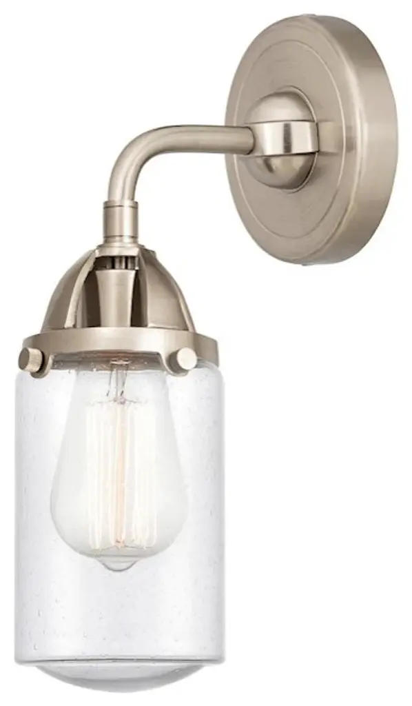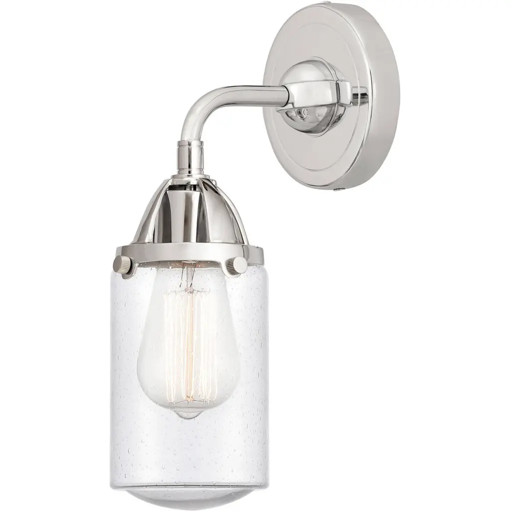 Innovations Lighting 288-1W-PC-G314-LED Dover 1 Light 4.5 inch Sconce. Style: Transitional, Industrial, Restoration-Vintage. Collection: Nouveau 2. Material: Steel, Cast Brass, Glass. Metal Finish(Body): Polished Chrome. Metal Finish(Canopy/Backplate): Polished Chrome. Dimension(in): 10.875(H) x 4.5(W) x 6.5(Ext). Bulb: (1)3.5 Watt LED Vintage Medium Base Bulb Included. Voltage: 120. Dimmable: Yes. Color Temperature: 2700. CRI: 82. Lumens: 350. Maximum Wattage Per Socket: 100. Glass Shade Description: Seedy Dover. Shade Material: Glass. Glass or Metal Shade Color: Seedy. Glass Type: Seeded. Shade Size Dimension(in): 4.5(Dia) x 6.5(H). Shade Fitter Measurement: 3.25 inch Fitter. Canopy Dimension(in): 4.5(Dia). Backplate Dimenison(in): 4.5(Dia) x 0.75(Depth). UL and ETL Certification: Damp Location.