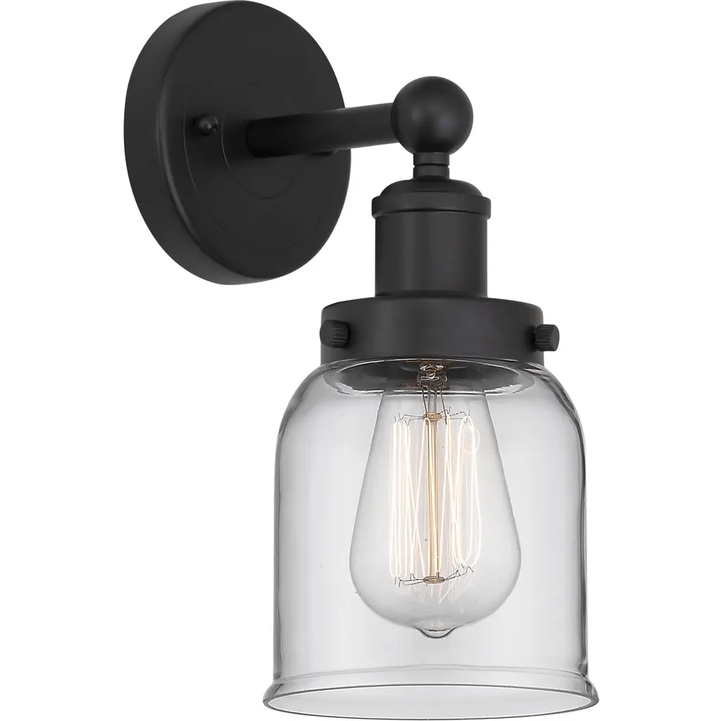 INNOVATIONS LIGHTING 447-1W-BK-G322-LED Caden 1 Light 9 inch Sconce. Innovations Lighting Caden 1 Light 9 inch Matte Black Sconce. Metal Finish (Body): Matte Black. Metal Finish (Canopy/Backplate): Matte Black. Glass or Metal Shade Color: Clear. Material: Steel, Glass. Shade Material: Glass. Dimension(in): 10.25(H) x 6.75(W) x 8.625(Ext). Backplate Dimension(in): 0.875(D) x 5(Dia). Shade Size(in): 5(H) x 6.75(Dia). Bulb: (1) 3.5 Watt LED Vintage Medium Base Bulb Included. Voltage: 120. Dimmable: Yes. Color Temperature(Kelvin): 2700. CRI: 82. Lumens: 350. Glass Type: Transparent . Glass or Metal Shade Shape: Cone. Shade Fitter Measurement: 3.25 inch Fitter. ADA Compliant: No. Style: Retro, Industrial. Ul Certification Type: Damp Location. Warranty: 2 Year Finish, Lifetime Electrical.