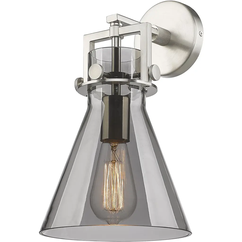 INNOVATIONS LIGHTING 447-1W-PC-G63 Caden 1 Light 9 inch Sconce. Innovations Lighting Caden 1 Light 9 inch Polished Chrome Sconce. Metal Finish (Body): Polished Chrome. Metal Finish (Canopy/Backplate): Polished Chrome. Glass or Metal Shade Color: Plated Smoke. Material: Steel, Glass. Shade Material: Glass. Dimension(in): 11(H) x 6.25(W) x 8.375(Ext). Backplate Dimension(in): 0.875(D) x 5(Dia). Shade Size(in): 5.75(H) x 6.25(Dia). Bulb: (1)60W Incandescent Medium Base(Not Included). Voltage: 120. Dimmable: Yes. Color Temperature(Kelvin): 2200. CRI: 99.9. Lumens: 220. Glass Shade: Plated Smoke Large Cone. Glass Type: Colorful . Glass or Metal Shade Shape: Cone. Shade Fitter Measurement: 3.25 inch Fitter. ADA Compliant: No. Style: Retro, Industrial. Ul Certification Type: Damp Location. Warranty: 2 Year Finish, Lifetime Electrical.