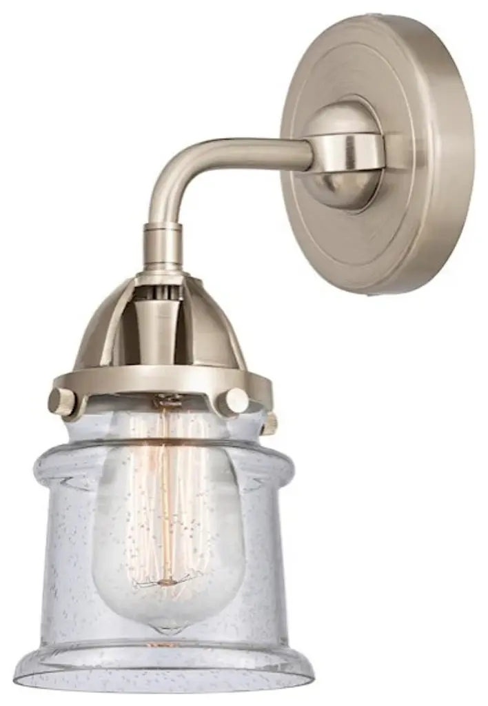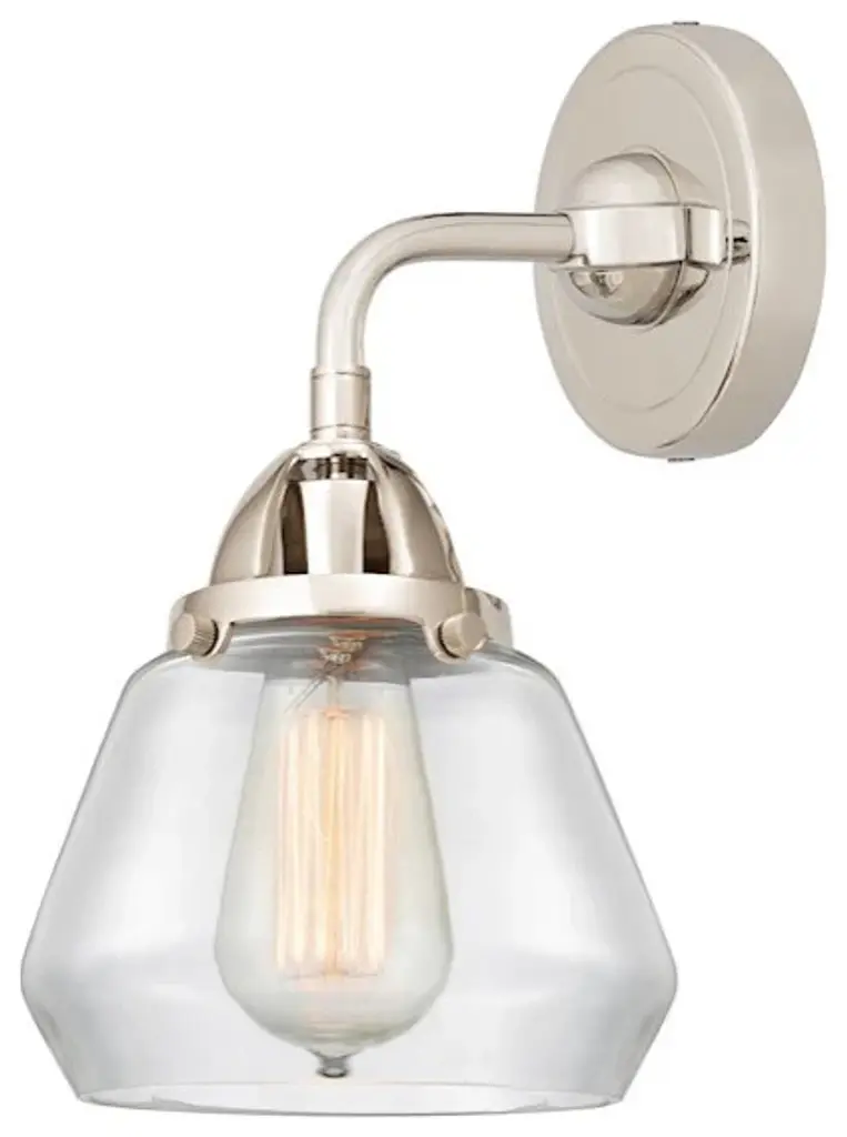 Innovations Lighting 288-1W-SN-G312-LED Dover 1 Light 4.5 inch Sconce. Style: Transitional, Industrial, Restoration-Vintage. Collection: Nouveau 2. Material: Steel, Cast Brass, Glass. Metal Finish(Body): Brushed Satin Nickel. Metal Finish(Canopy/Backplate): Brushed Satin Nickel. Dimension(in): 10.875(H) x 4.5(W) x 6.5(Ext). Bulb: (1)3.5 Watt LED Vintage Medium Base Bulb Included. Voltage: 120. Dimmable: Yes. Color Temperature: 2700. CRI: 82. Lumens: 350. Maximum Wattage Per Socket: 100. Glass Shade Description: Clear Dover. Shade Material: Glass. Glass or Metal Shade Color: Clear. Glass Type: Transparent . Shade Size Dimension(in): 4.5(Dia) x 6.5(H). Shade Fitter Measurement: 3.25 inch Fitter. Canopy Dimension(in): 4.5(Dia). Backplate Dimenison(in): 4.5(Dia) x 0.75(Depth). UL and ETL Certification: Damp Location.