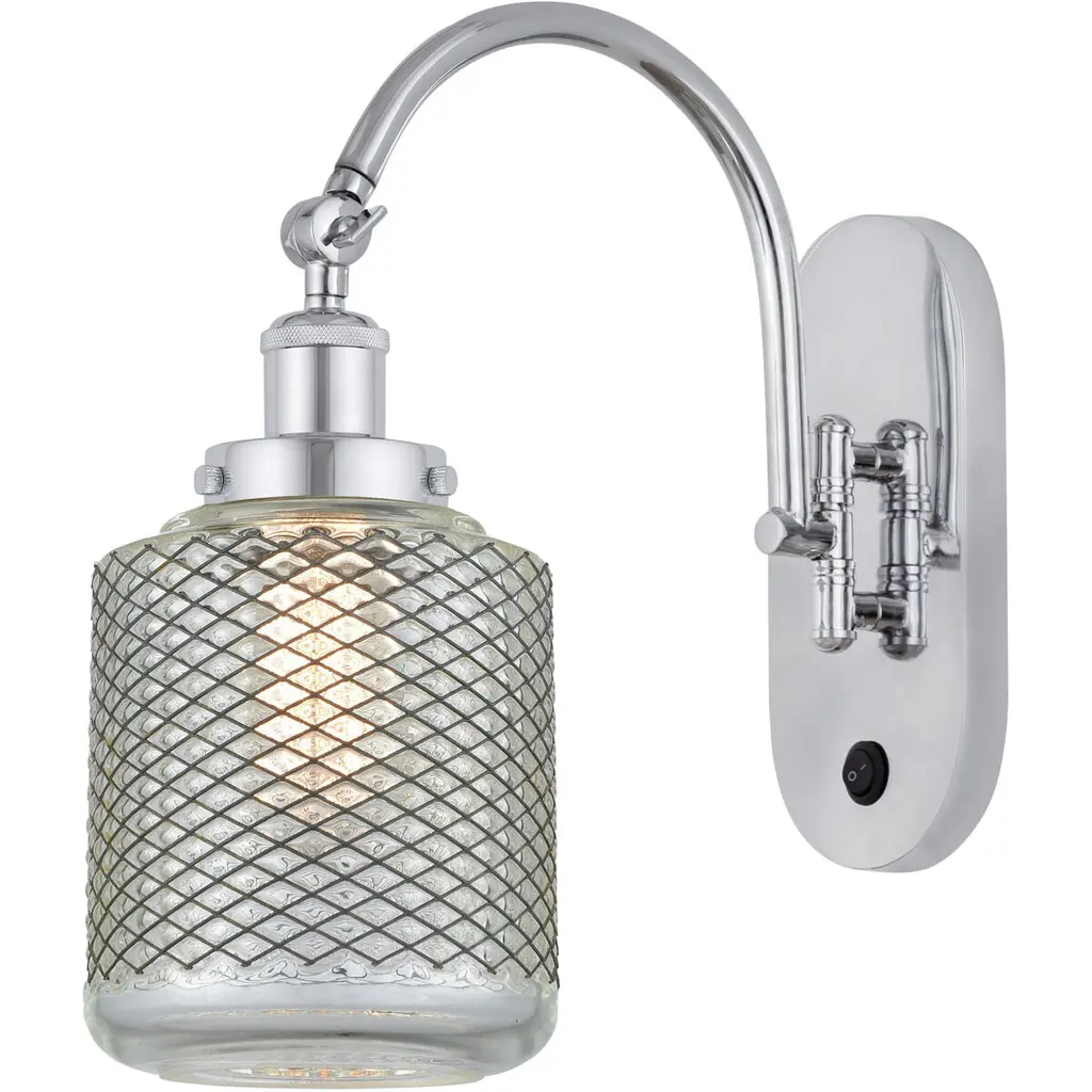INNOVATIONS 317-1W-PC-M18-PC Nestbrook 1 5 inch Sconce Polished Chrome. Style: Industrial, Farmhouse, Restoration-Vintage. Collection Name: Downtown Urban. Metal Finish(Body): Polished Chrome. Metal Finish(Shade): Polished Chrome. Material: Steel, Cast Brass. Dimension(in): 10(H) x 4.75(W) x 11.375(Ext). Bulb: (1)6W LED(Included). Voltage: 120. Dimmable: Yes. Color Temperature (Kelvin): 2700. Color Rendering Index (CRI): 90. Lumens: 750. Life Expectancy (Hours): 15000. Shade Shape: Cylinder. Glass or Metal Shade Color: Polished Chrome. Shade Material: Metal. Metal Shade Description: Polished Chrome Nestbrook. Shade Dimension(in): 4.75(W) x 7(H). Fitter Measurement (Glass Or Metal Shade Fitter Size): Threaded socket ring with a 1.625 inch opening. Backplate Dimension(in): 5.3(Dia) x 0.75(Depth). ADA Compliant: No. California Proposition 65 Warning Required: Yes. UL/ETL Certification Type: Damp Location.