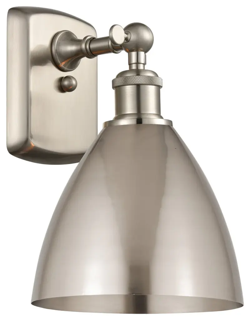 INNOVATIONS 410-1W-PN-M412-8PN Newton Sphere 1 8 inch Sconce Polished Nickel. Style: Industrial, Farmhouse, Restoration-Vintage. Collection Name: Downtown Urban. Metal Finish(Body): Polished Nickel. Metal Finish(Shade): Polished Nickel. Material: Steel, Cast Brass. Dimension(in): 14.25(H) x 8(W) x 9.25(Ext). Bulb: (1)60W Medium Base Incandescent(Not Included). Voltage: 120. Dimmable: Yes. Color Temperature (Kelvin): 2200. Color Rendering Index (CRI): 99.9. Lumens: 220. Life Expectancy (Hours): 2000. Shade Shape: Bell. Glass or Metal Shade Color: Polished Nickel. Shade Material: Metal. Metal Shade Description: Polished Nickel Newton Sphere. Shade Dimension(in): 8(W) x 9.625(H). ADA Compliant: No. California Proposition 65 Warning Required: Yes. UL/ETL Certification Type: Damp Location.
