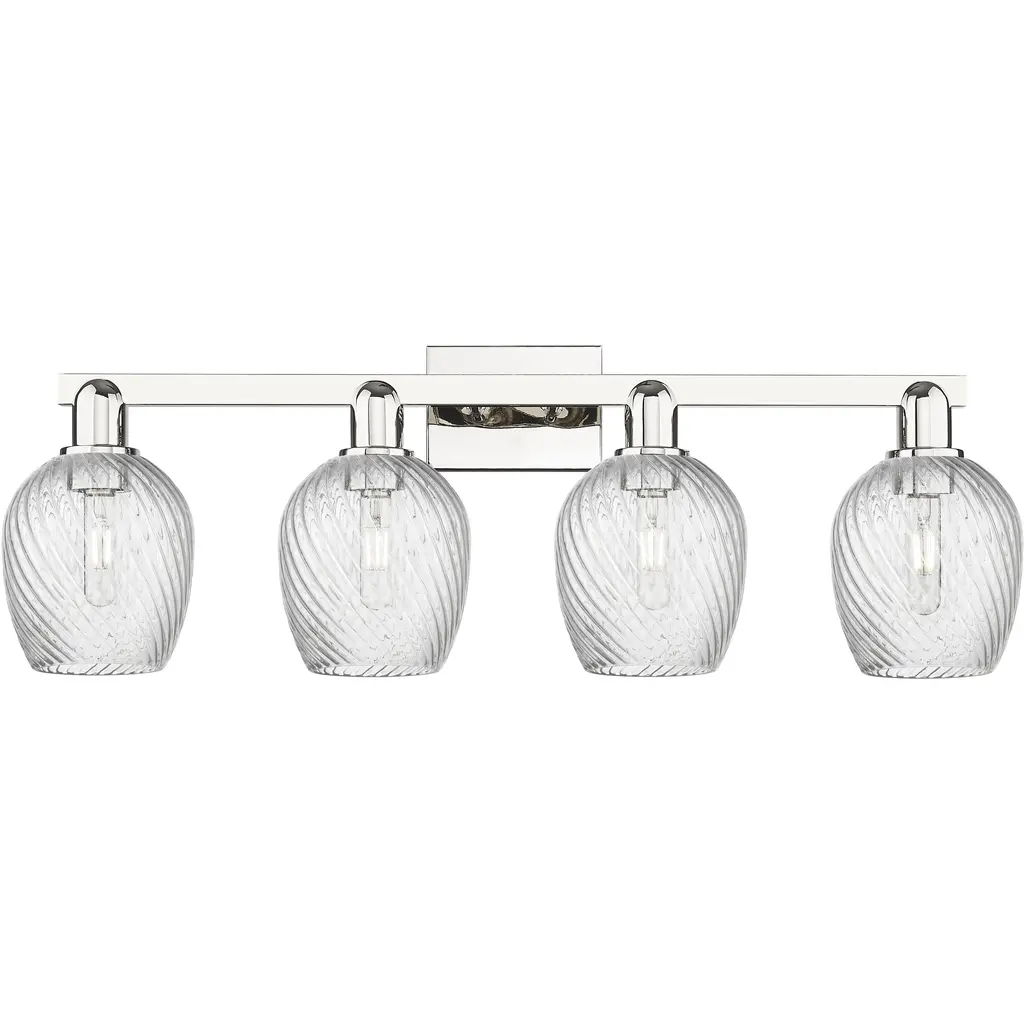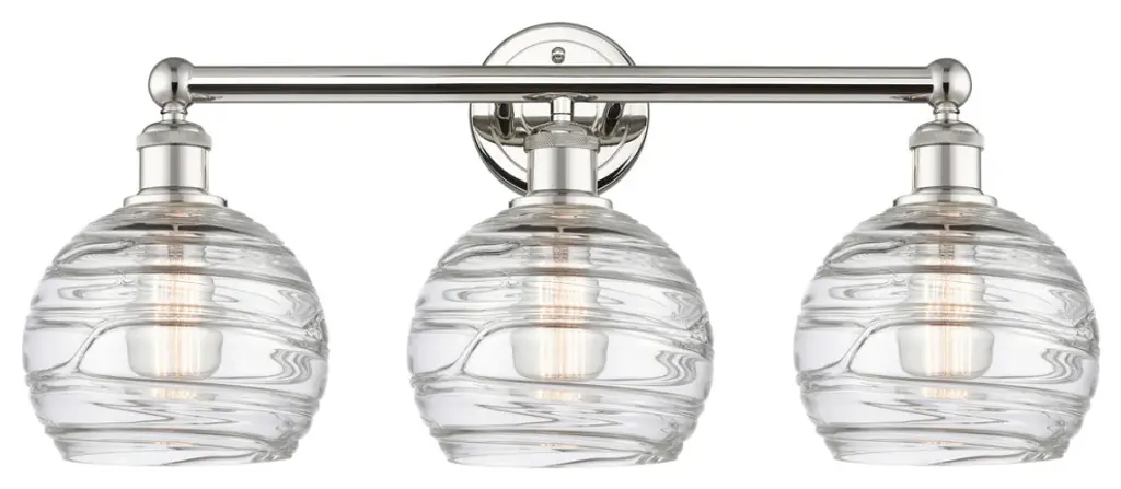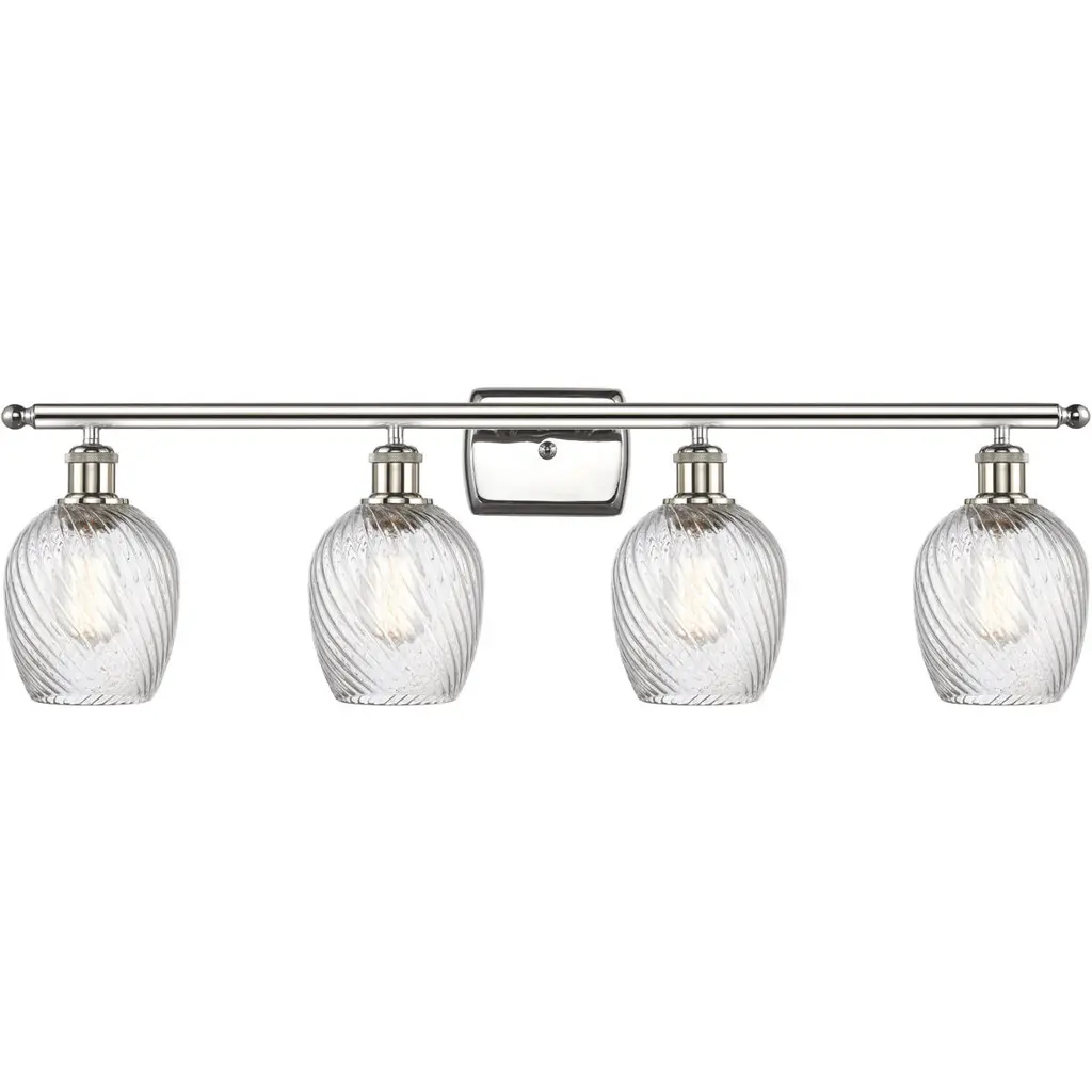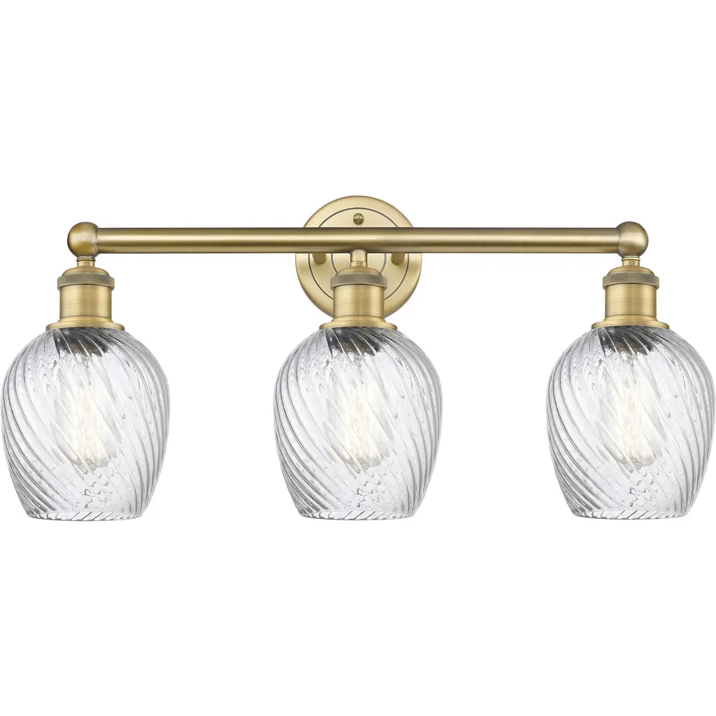 INNOVATIONS 616-3W-PC-G292 Salina 3 23 inch Bath Vanity Light Polished Chrome. Style: Industrial, Modern Contempo, Restoration-Vintage, Transitional . Collection Name: Downtown Urban. Metal Finish(Body): Polished Chrome. Material: Steel, Cast Brass, Glass. Dimension(in): 11.625(H) x 23.75(W) x 7.375(Ext). Bulb: (3)60W Medium Base Incandescent(Not Included). Voltage: 120. Dimmable: Yes. Color Temperature (Kelvin): 2200. Color Rendering Index (CRI): 99.9. Lumens: 220. Life Expectancy (Hours): 2000. Glass Shade Description: Clear Spiral Fluted Salina. Glass Type: Transparent . Shade Shape: Globe/Orb. Glass or Metal Shade Color: Clear Spiral Fluted. Shade Material: Glass. Shade Dimension(in): 5.75(W) x 6.375(H). Fitter Measurement (Glass Or Metal Shade Fitter Size): Neckless with a 1.675 inch opening. ADA Compliant: No. California Proposition 65 Warning Required: Yes. UL/ETL Certification Type: Damp Location.