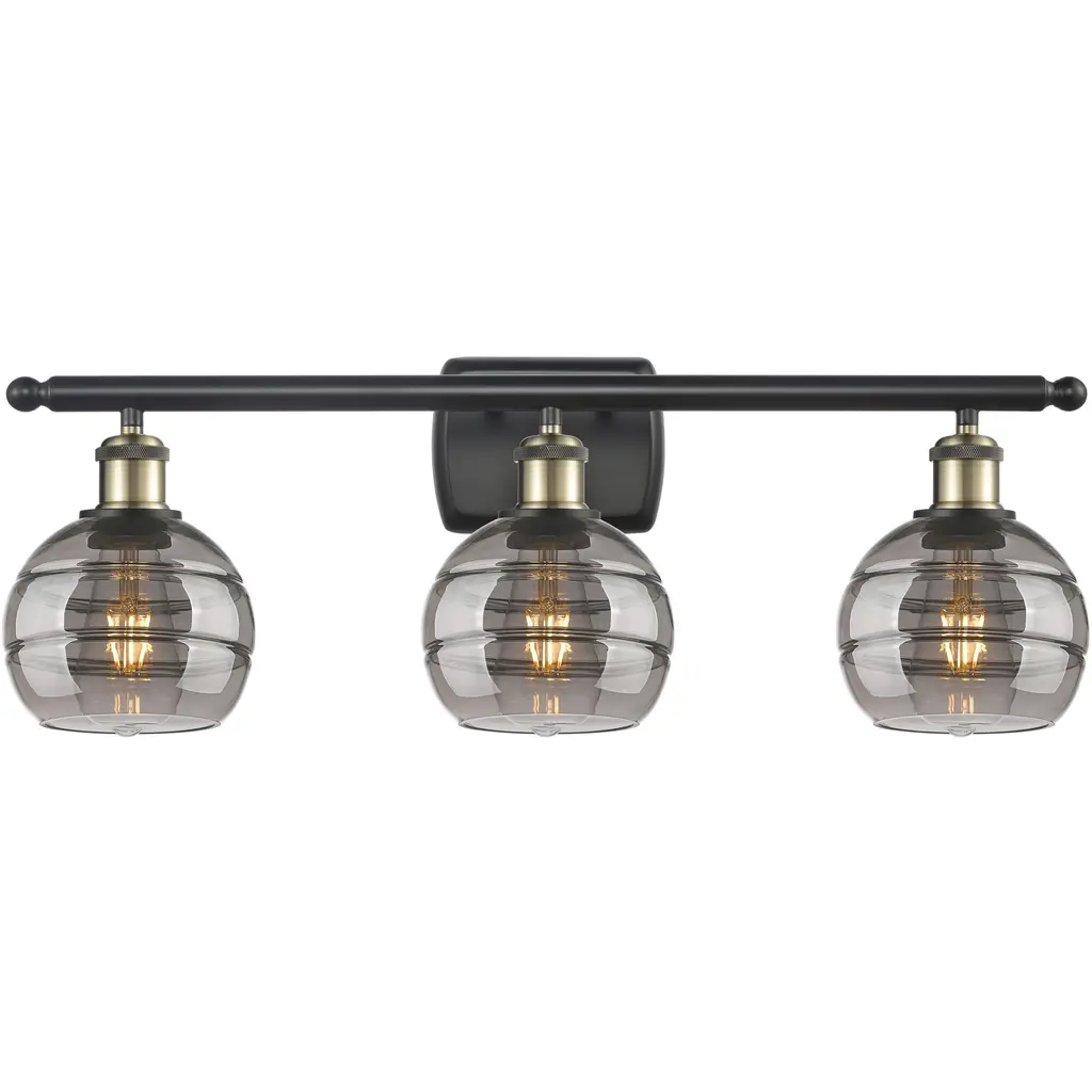INNOVATIONS 472-3W-WZ-G472-6SM Somers 3 24 inch Bath Vanity Light Weathered Zinc. Style: Industrial, Farmhouse, Restoration-Vintage. Collection Name: Downtown Urban. Metal Finish(Body): Weathered Zinc. Material: Steel, Cast Brass, Glass. Dimension(in): 12.875(H) x 24(W) x 7(Ext). Bulb: (3)6W LED(Included). Voltage: 120. Dimmable: Yes. Color Temperature (Kelvin): 2700. Color Rendering Index (CRI): 90. Lumens: 750. Life Expectancy (Hours): 15000. Glass Shade Description: Light Smoke Somers. Glass Type: Smoked. Shade Shape: Bell/Urn. Glass or Metal Shade Color: Light Smoke. Shade Material: Glass. Shade Dimension(in): 5.5(W) x 7.75(H). ADA Compliant: No. California Proposition 65 Warning Required: Yes. UL/ETL Certification Type: Damp Location.