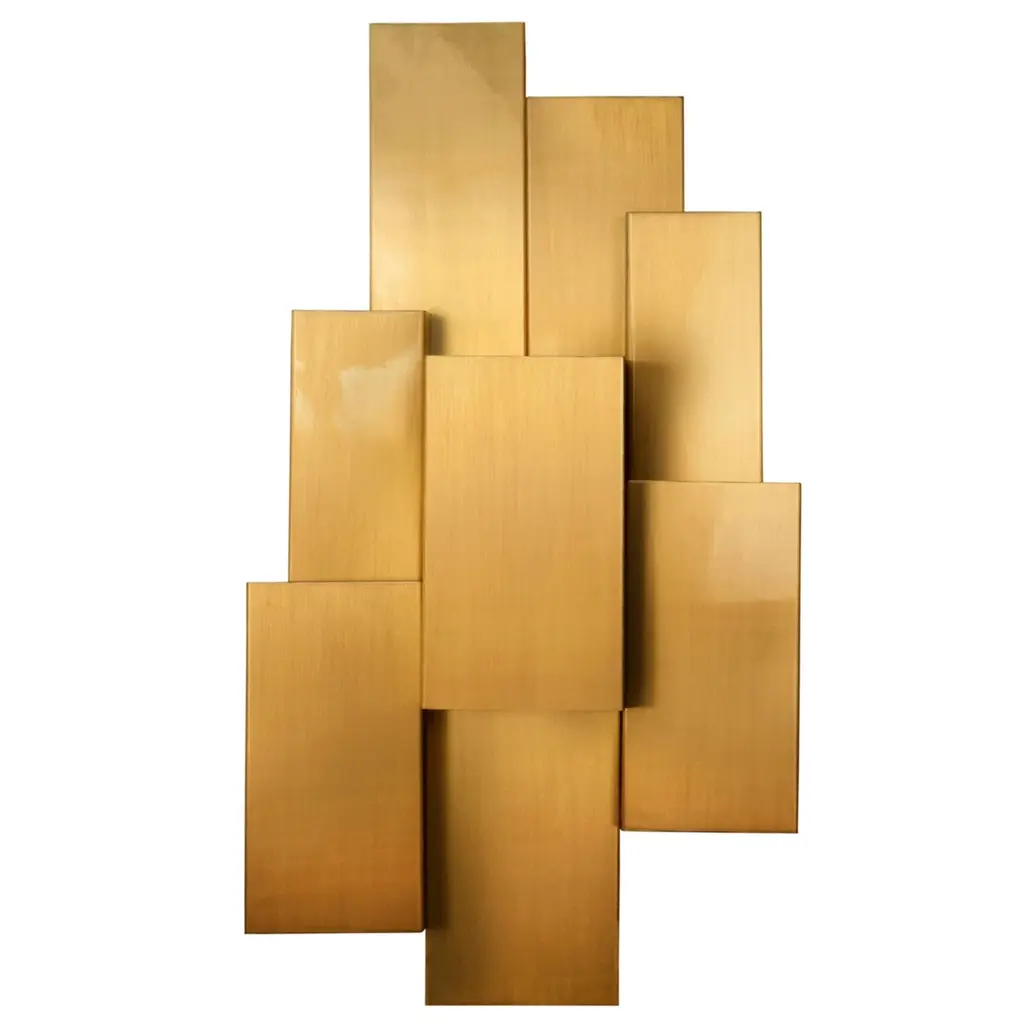 Inspiring trees recreates a treetop and is fully handcrafted. The rays of light pierce the geometric design in an unexpected way, almost ethereal.Slender and seemingly minimal, Inspiring Trees is a lighting piece that carries form and meaning. It recreates a vertical ‘treetop’ and is fully handcrafted in brushed brass.The light is distributed by the three levels of the ‘treetop’ and diffuses, controlled by the geometry of several overlapping pieces. It is a unique lamp specially designed to decorate hospitality projects such as luxury hotels that look for unique contemporary wall lamps.Product detailsHandcrafted brushed stainless steel finished in gloss varnish.Product optionsHammered, brushed, oxidized brushed or aged brushed brass or copper or steel.Weight3Kg 6.7 lbs Electrical characteristicsMains: 3 wires connection - Live ; Neutral ; EarthFrequency: 50-60HzUSAVoltage: 110-130VACLamp: LED E12 candelabrum, 2 x 40W max.EUROPEVoltage: 220-240VACLamp: LED E14, 2 x 40W max.Made to order. Custom sizes and other finishes are available under request. Designed by Joana Santos Barbosa, 2014. Handmade in Portugal.