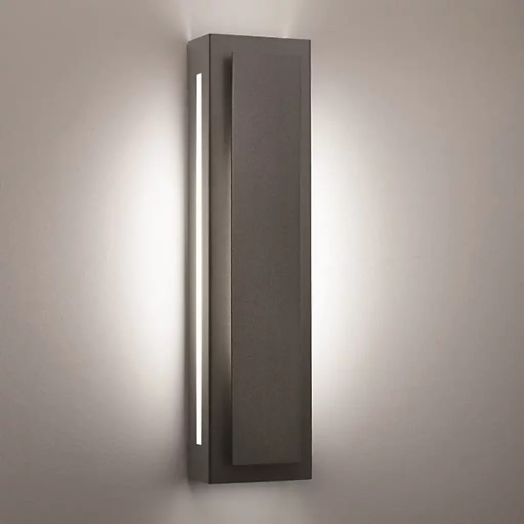 The Ultralights Invicta 16353 Outdoor LED Wall Sconce is a contemporary piece with cut outs where the energy efficient illumination shines through. The LED lighting illuminates through the slits on the sides, creating a lit atmosphere with a modern aesthetic. Utility driven and practical, this fixture will provide lighting for years to come without being distracting from your existing decor.