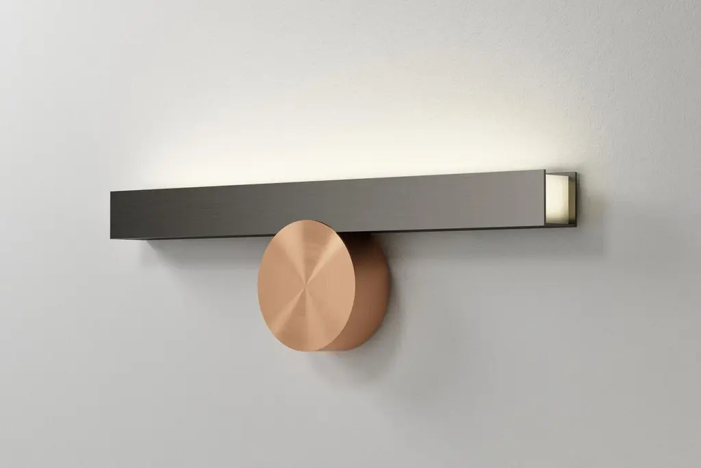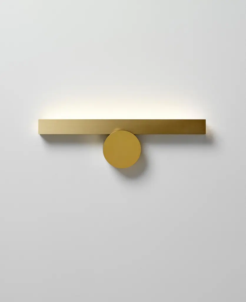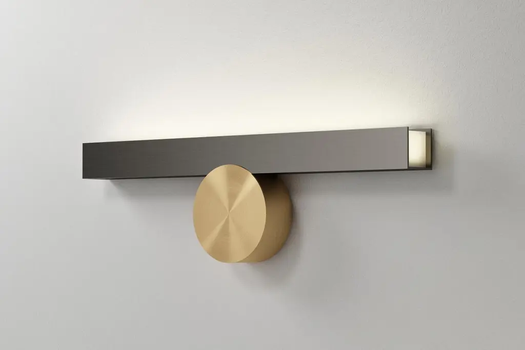 IP Calee V1 satin and polished brass wall light by POOLDimensions: D45 x W4.4 X H13 cmMaterials: solid brass, satin and polished brassOthers finishes and dimensions available.All our lamps can be wired according to each country. If sold to the USA it will be wired for the USA for instance.Alphabet of shapes, the Calé (e) collection is presented in a geometric game where the sensation of imbalance forms simple, linear and refined objects.Elegant shapes, minimalist accents and immaculate finishes. Find the CVL spirit in a collection of aesthetic and functional wall lights, specifically designed for bathrooms.CVL Luminaires, a company located in the Loire Valley, has more than five decades of experience in the design and manufacture of luminaires.The company ensures 100% French manufacturing. On the one hand, it offers a range of modular and adaptable catalog products, and on the other, it has a know-how that allows it to carry out fully customized projects.Your asset: flexibility. The factory allows production from one unit to another. In addition, the CVL team supports you in product development: study, design, standardization and production.