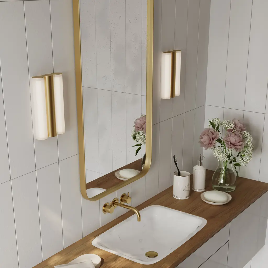 Belgium-based designer Sylvain Willenz adds a version of his Gamma wall fixture specifically designed for installation in the bathroom. With its signature tubular design, the IP light features a polycarbonate opal cylinder that radiates warm light from its integrated LED. Customization comes with a selection of metals to chose from, including brass, nickel, copper or graphite, each in a choice of polished or matte finish.