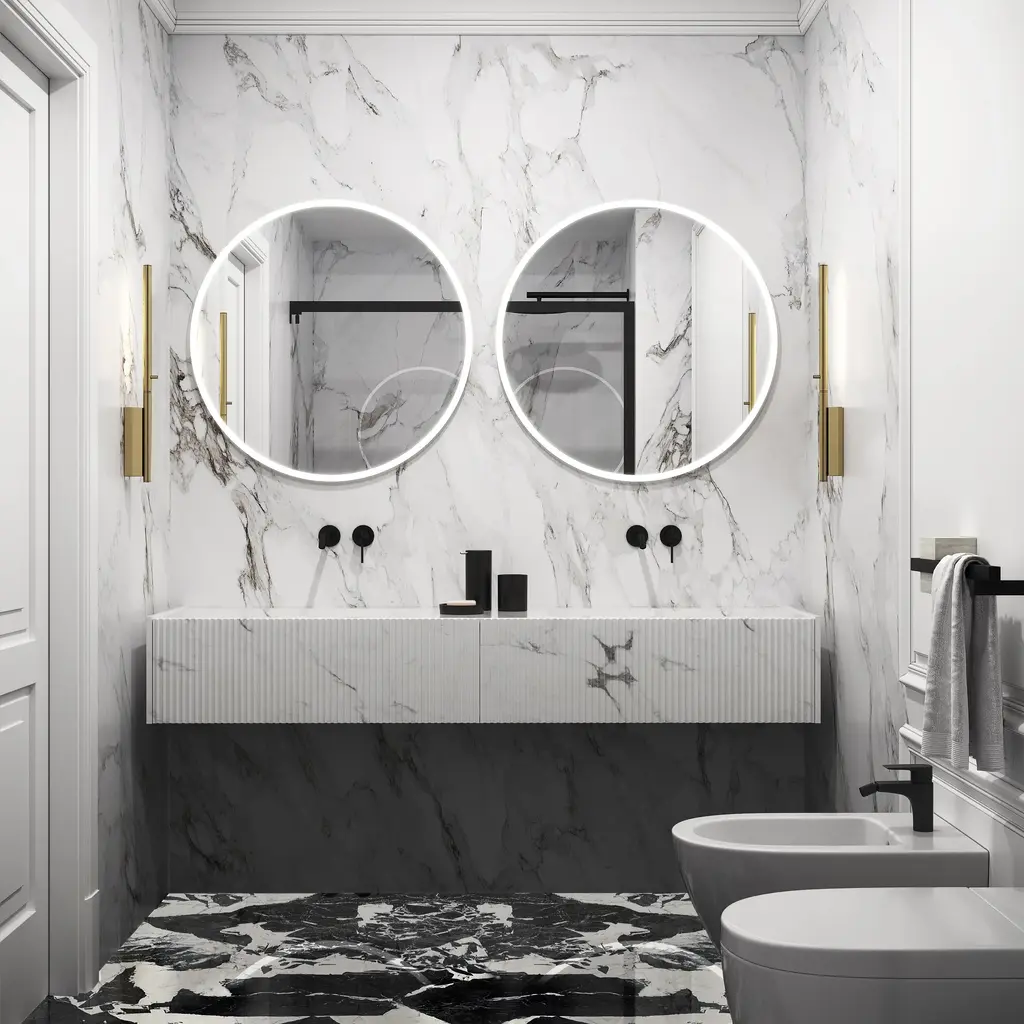 In an IP version specifically designed for bathrooms, the remarkably slimline Link provides a warming glow of LED illumination. French designer Émilie Cathelineau’s wall fixture can be placed alongside or over a mirror since it can be mounted either horizontally or vertically. Beautifully fashioned by French maker CVL in solid brass, it comes in a selection of satin or polished metal finishes.