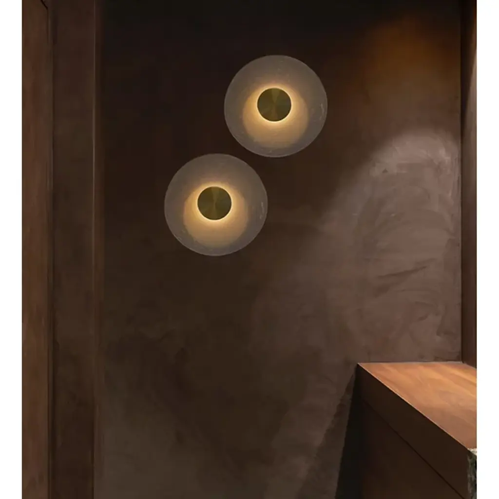 Iris LED Wall Sconce from Ridgely Studio Like is distinct to you as a handblown glass piece. It evokes the colorful, light-regulating rings of one’s eye that it shares its name with. Poetry, craftsmanship, and creativity highlight this piece by Zac Ridgely, a creator with an artistic approach to design. The sconce welcomes a standalone or expansive grouped display with help from a compact steel backplate. The backplate produces a front-facing disc that draws a bold silhouette while concealing the brilliant light source. Handblown by master artisans, the glass shade impresses with textural notes like that of the eye’s iris. This glass display receives a deep golden hue from the LEDs’ radiant glow.