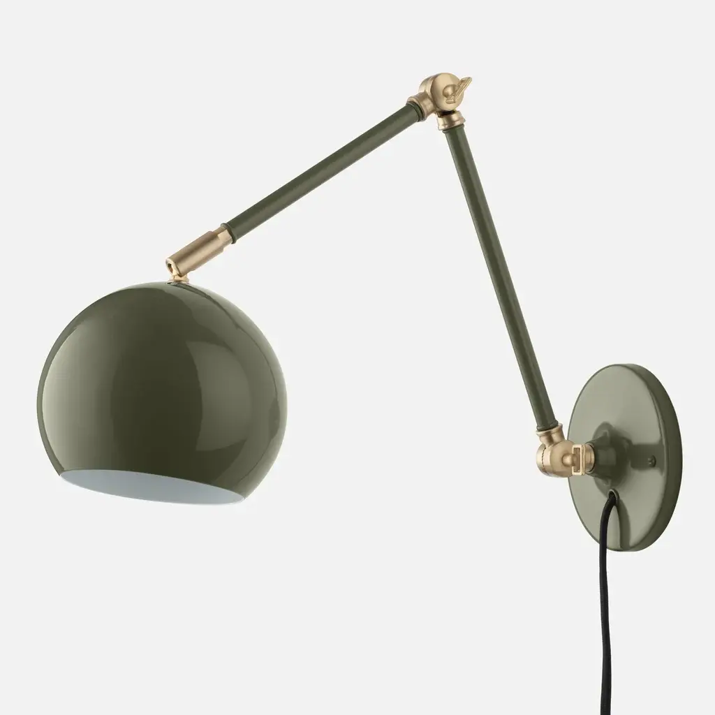 Arcing lines and a timeless silhouette work together to create this iconic fixture inspired by Scandinavian designs. Handcrafted from steel on a custom lathe, the Isaac Plug-In Sconce offers a juxtaposition of light, finish, and texture that illuminates a room even when unlit. The hand-spun process lends a unique quality to each shade while its adjustable arm lets you shine light where you need it. Also available as a hardwired wall sconce. Assembled in our Portland, Ore. factory using ethically-sourced domestic and global components. A Schoolhouse Original. Learn how to install a plug-in wall sconce and choose perfect wall sconce placement on our blog. Shop the Isaac Lighting Collection