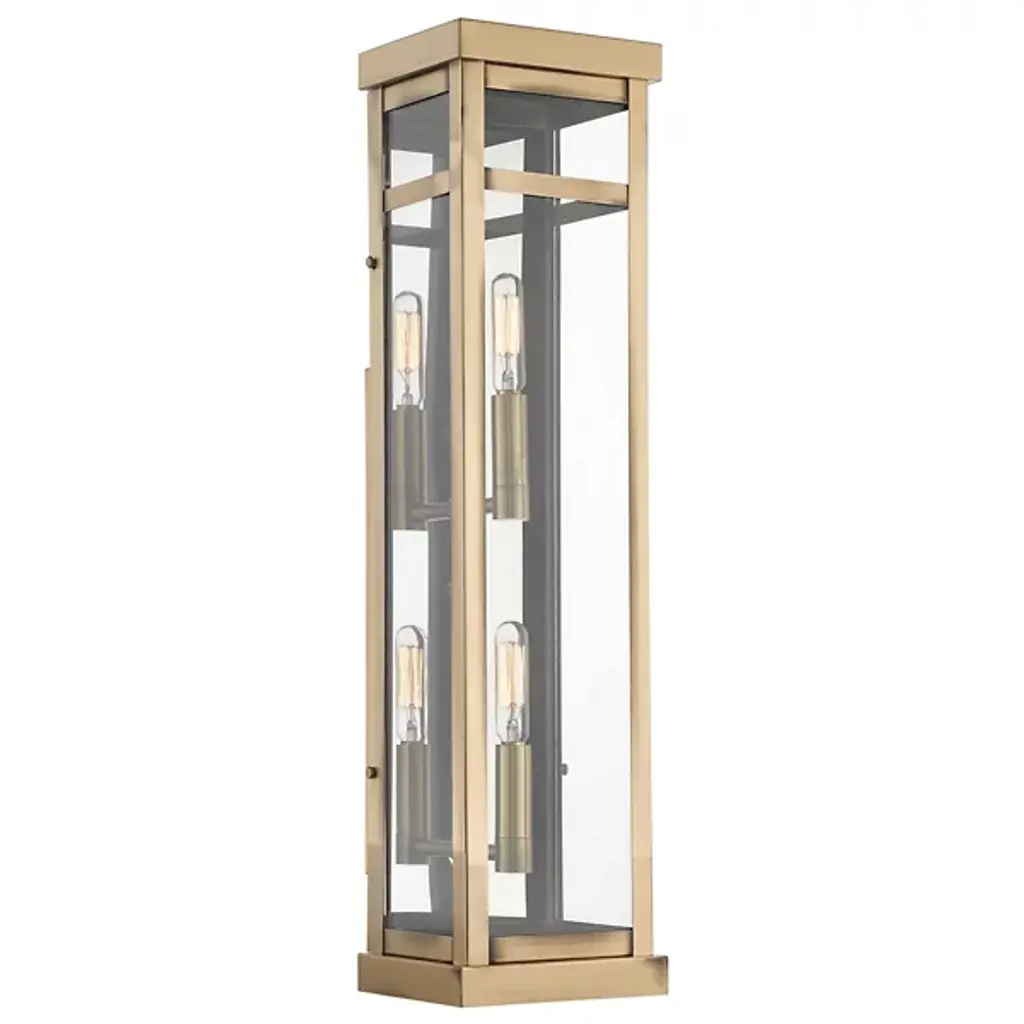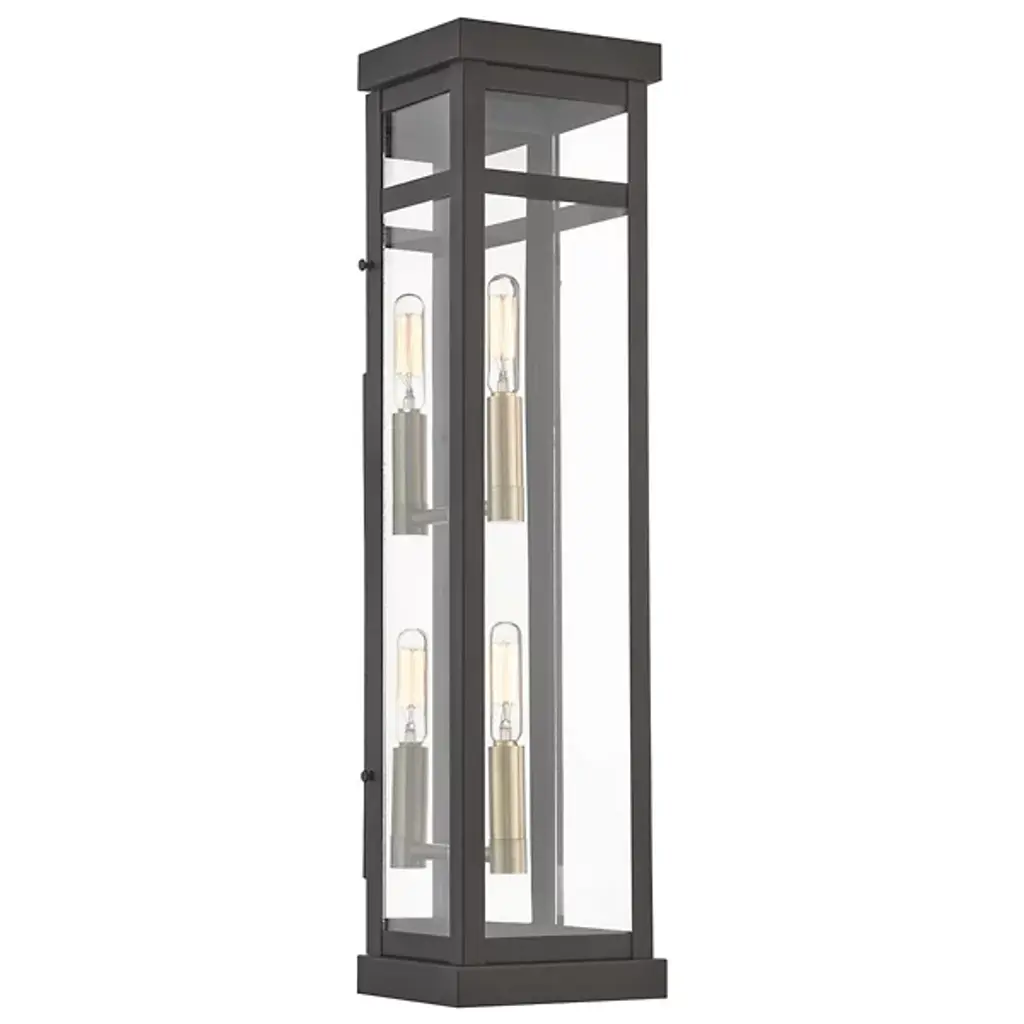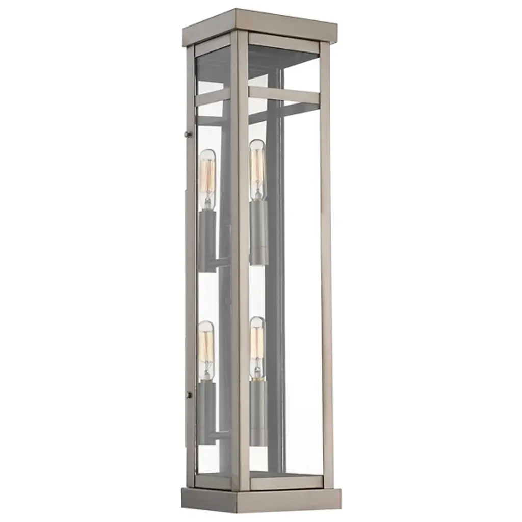 A sleek and clean modern piece perfect for announcing the outside of your home. The Isabella Outdoor Tall Wall Sconce from Alder & Ore brings an even layer of light as it mounts directly to the wall. Made of smooth metal, the solid base and top are supported by thick arms that frame tall panels of clear glass and the single crisp bulb within. The light from the bulb diffuses evenly through the glass and into the space around it.