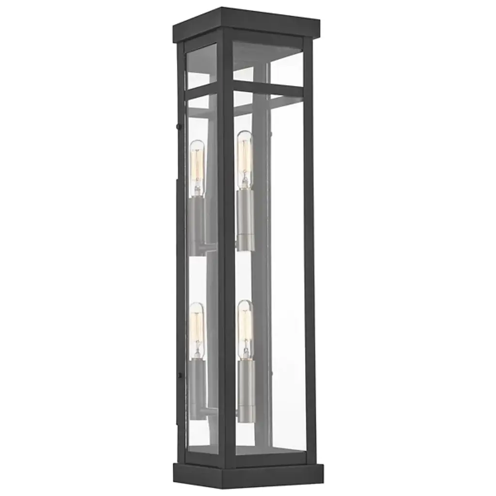 A sleek and clean modern piece perfect for announcing the outside of your home. The Isabella Outdoor Tall Wall Sconce from Alder & Ore brings an even layer of light as it mounts directly to the wall. Made of smooth metal, the solid base and top are supported by thick arms that frame tall panels of clear glass and the single crisp bulb within. The light from the bulb diffuses evenly through the glass and into the space around it.