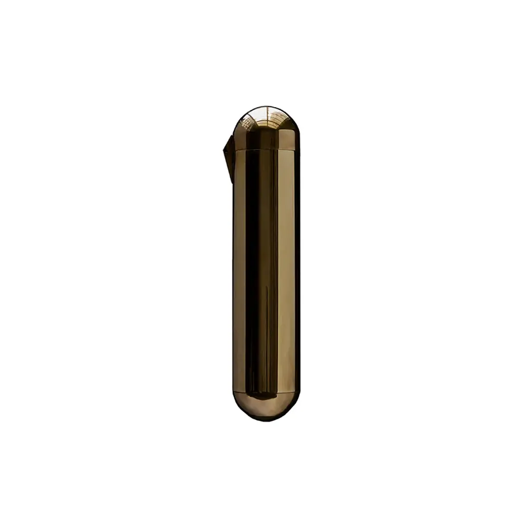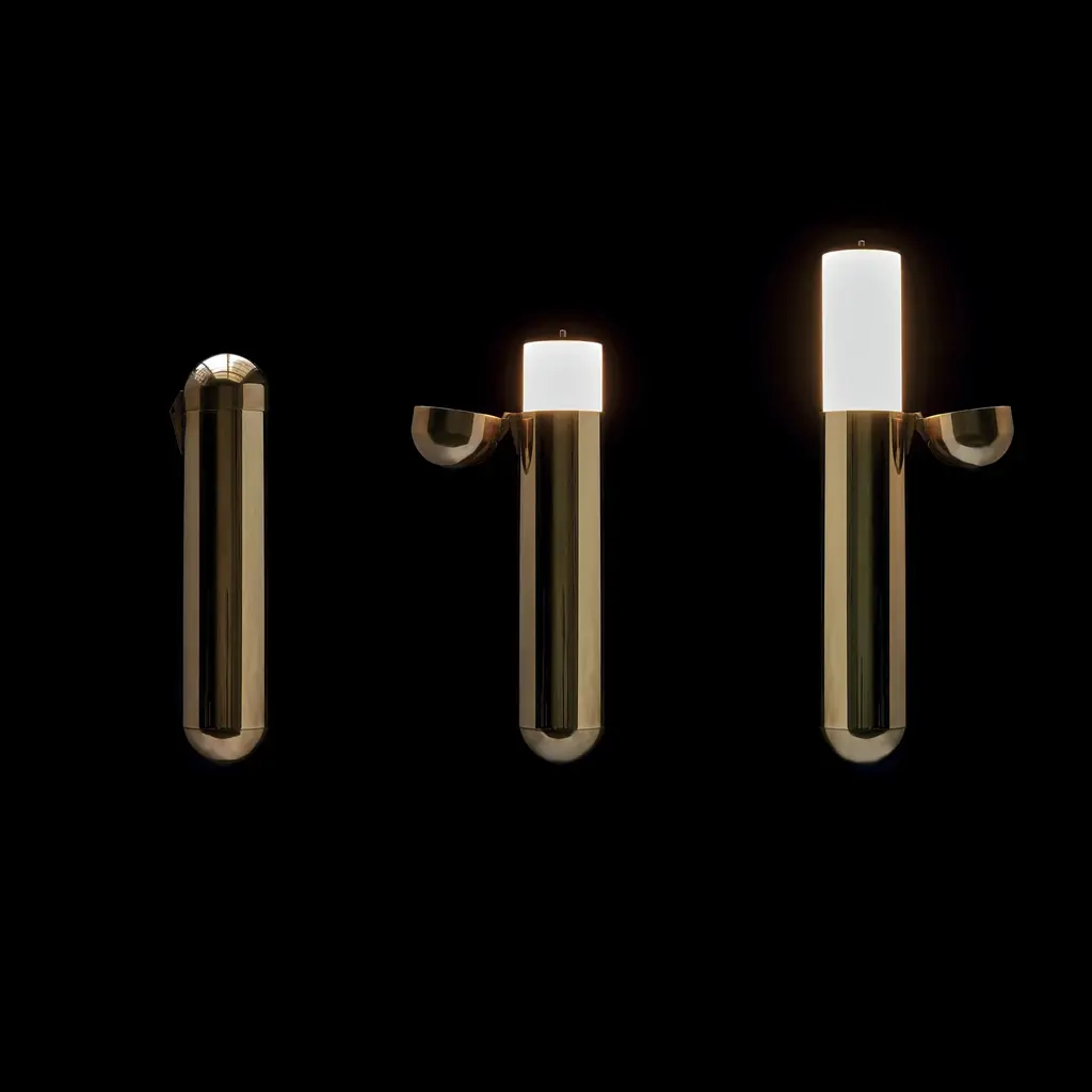 ISP’s elegant brass capsule adapts in a wall version with an alluring presence and a satisfyingly interactive operation. A brainchild of Italian-Russian designer Ilia Potemine, the lamp’s inner polycarbonate diffuser can be manually extended to provide the desired span of light or hidden altogether by closing the end cap—the glow ”eclipsed,” as maker DCW Éditions puts it.