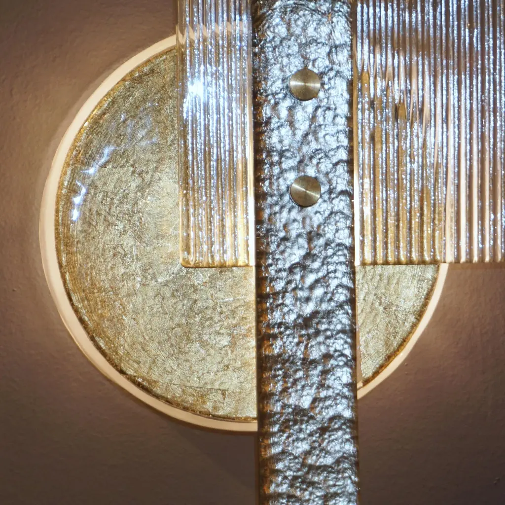 Italian Abstract Modern Gold Silver And Crystal Murano Glass Sconce