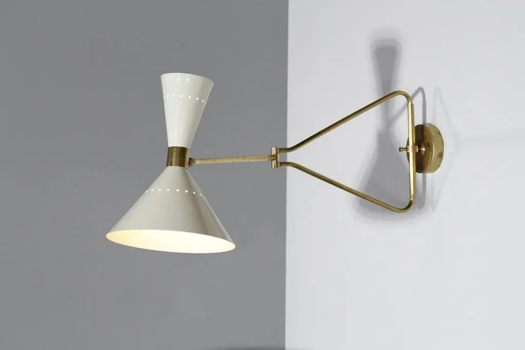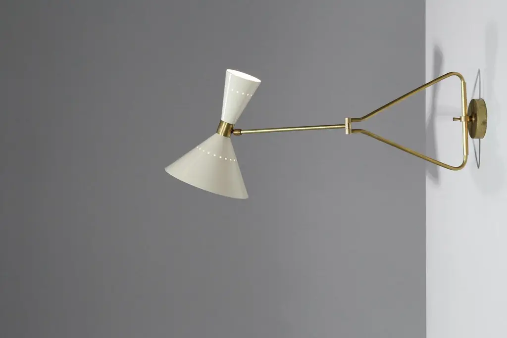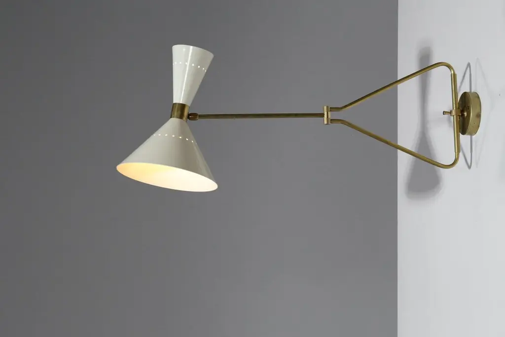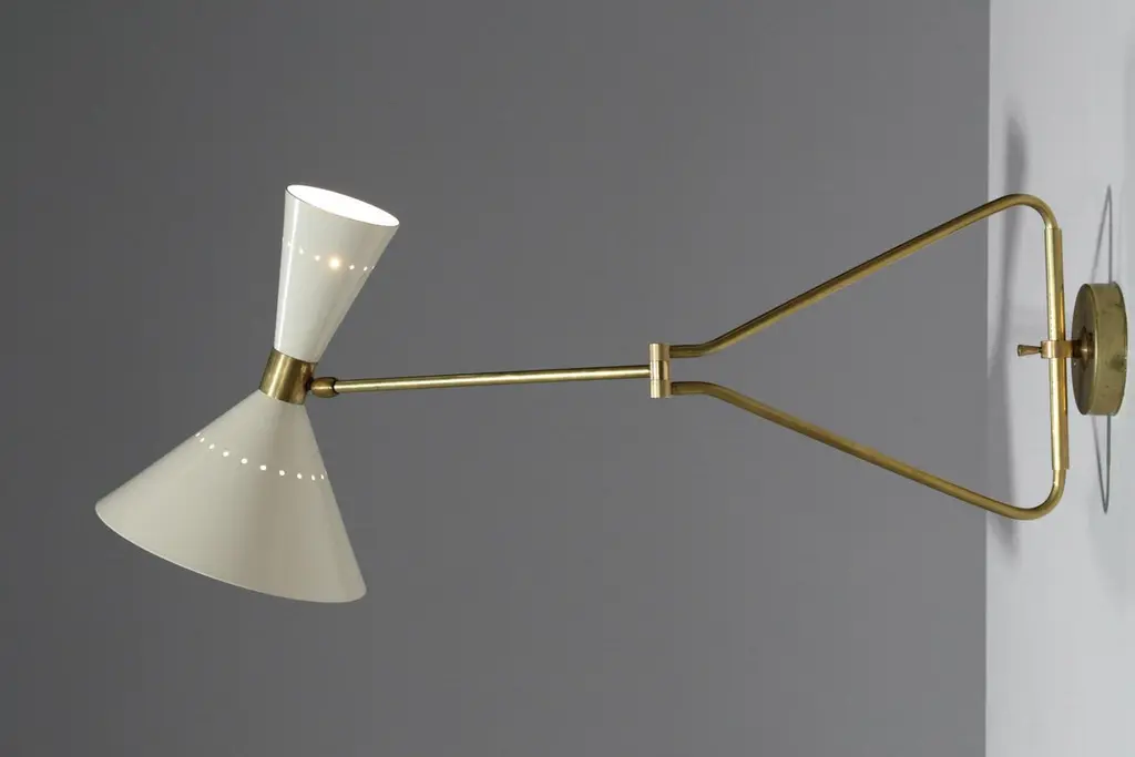 Italian Adjustable Wall Light "Perla" Beige Modern Brass