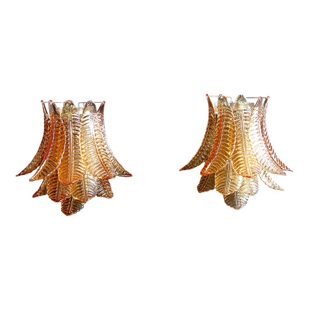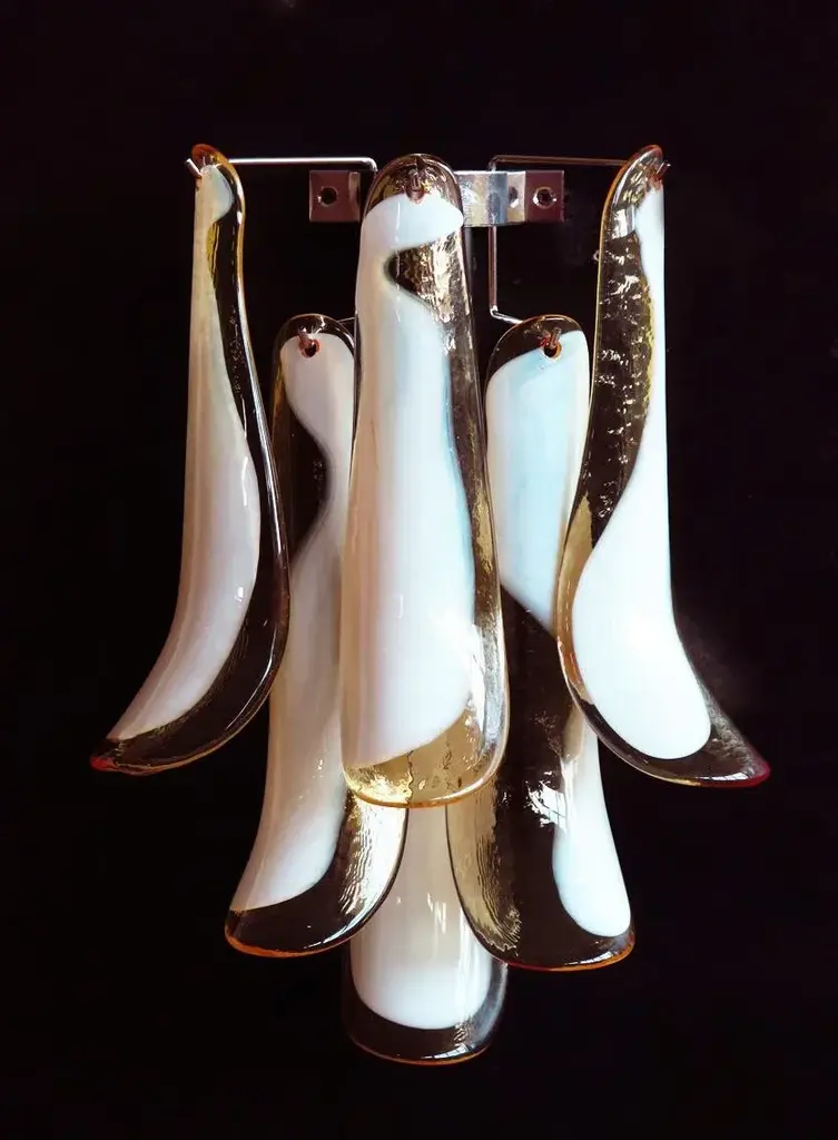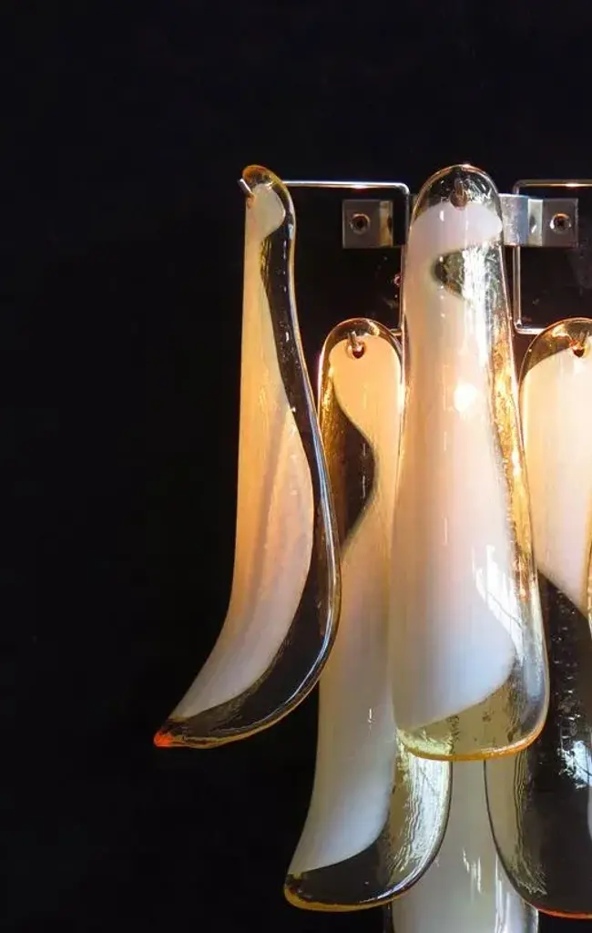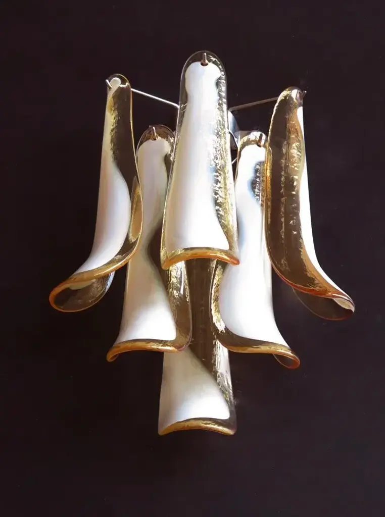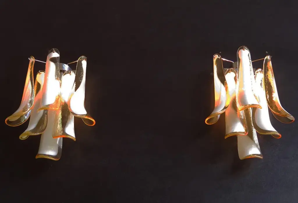 Italian Murano Sconces Of Mazzega Caramel Lattimo Petals Glass - A Pair
