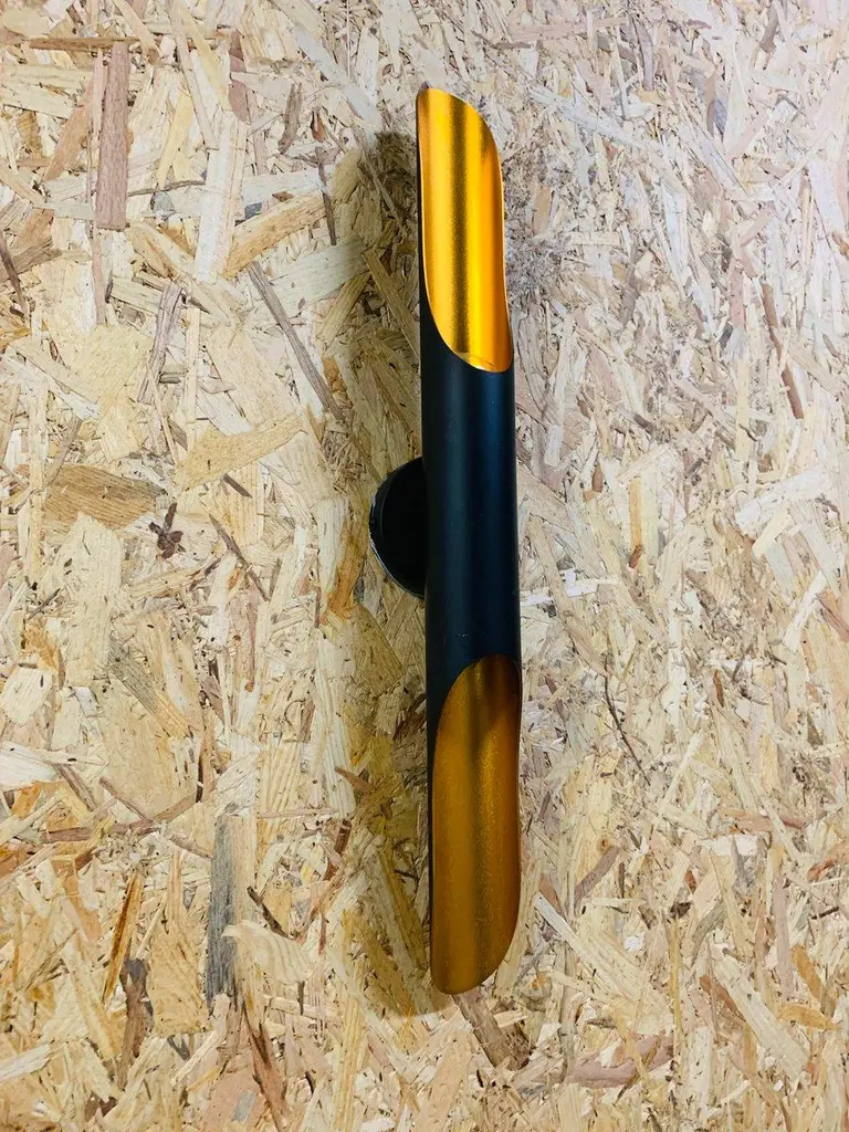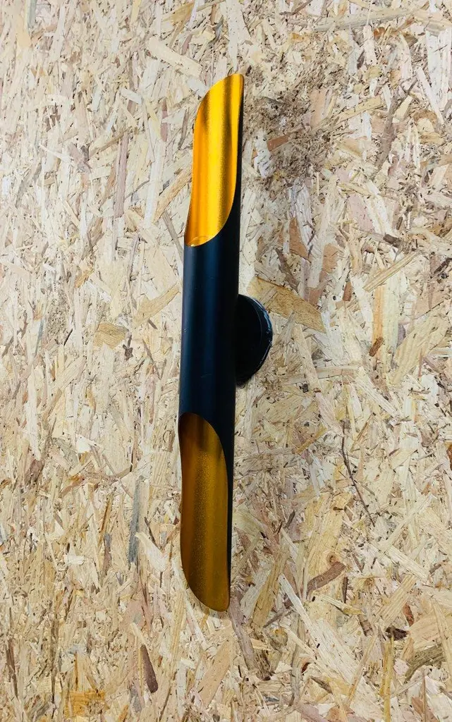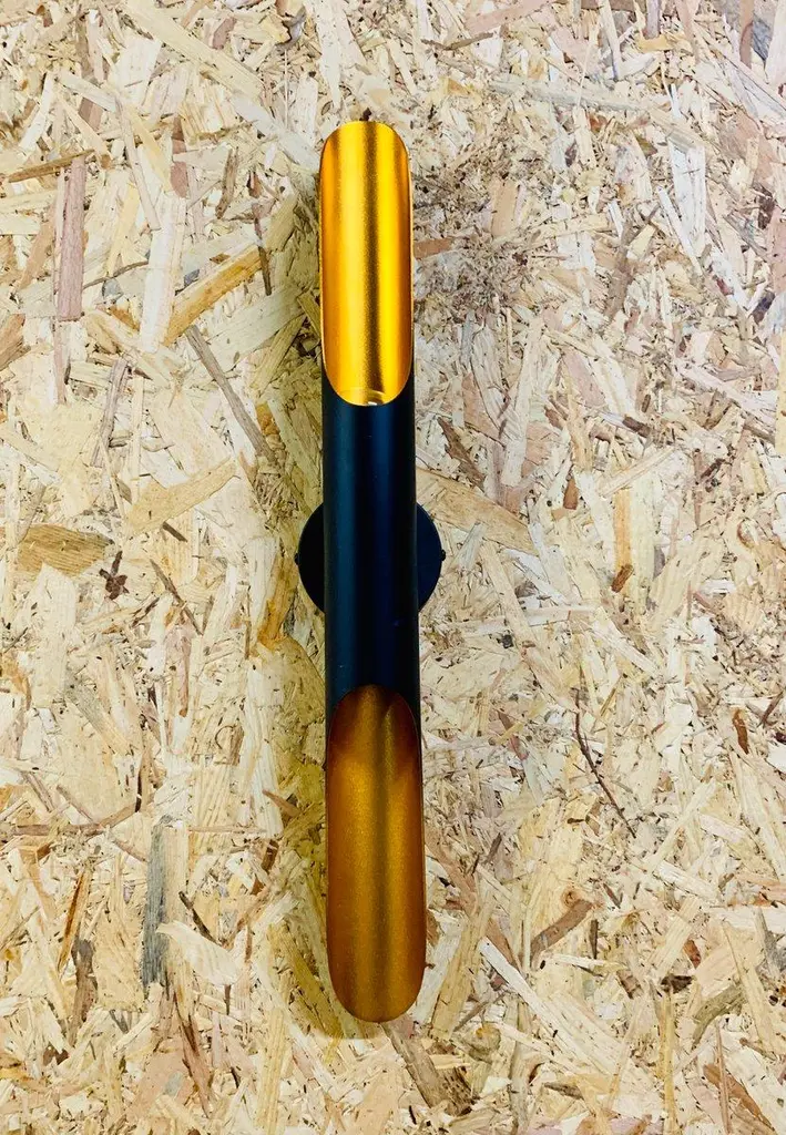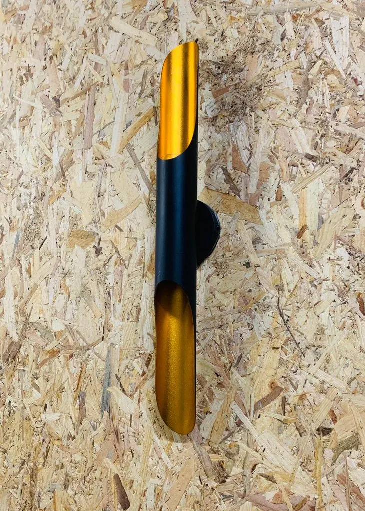 70s Italian Wall Sconce – Matte Black and Gold Elegant modern Italian style wall sconce, made in Italy in the 70s. This vintage piece is made of matte black lacquered iron, with gold details, designed to enhance the light and create a fascinating luminous effect on the wall. The structure houses two light points, offering a double light emission for atmospheric lighting, ideal for refined environments and spaces with a sophisticated style. Key Features: Design and Production Period: 1970–1979 Origin: Italy Style: Modern Italian Condition: Excellent – minimal signs of use compatible with age. Restoration: New electrical system installed Material: Iron Colors: Matt Black, Gold Height: 60 cm Diameter: 6 cm Socket type: European (up to 250V) Operation: Verified and confirmed by the seller A decorative and functional object, perfect for those who want to enrich their interiors with a touch of authentic vintage design. European Plug (up to 250V).The wiring of this item may be original and might need replacement, if not specified otherwise.