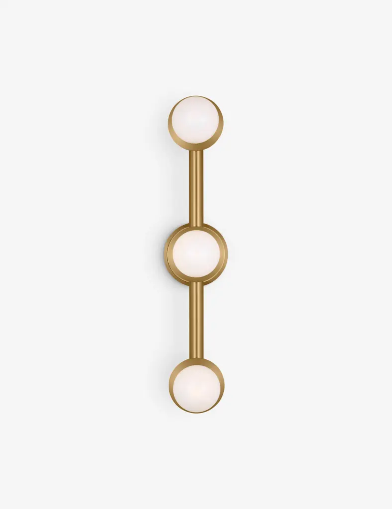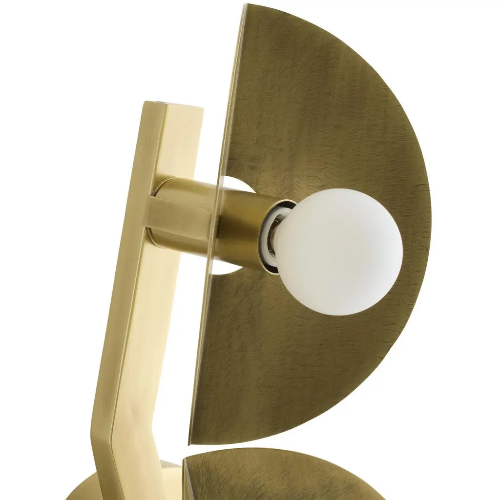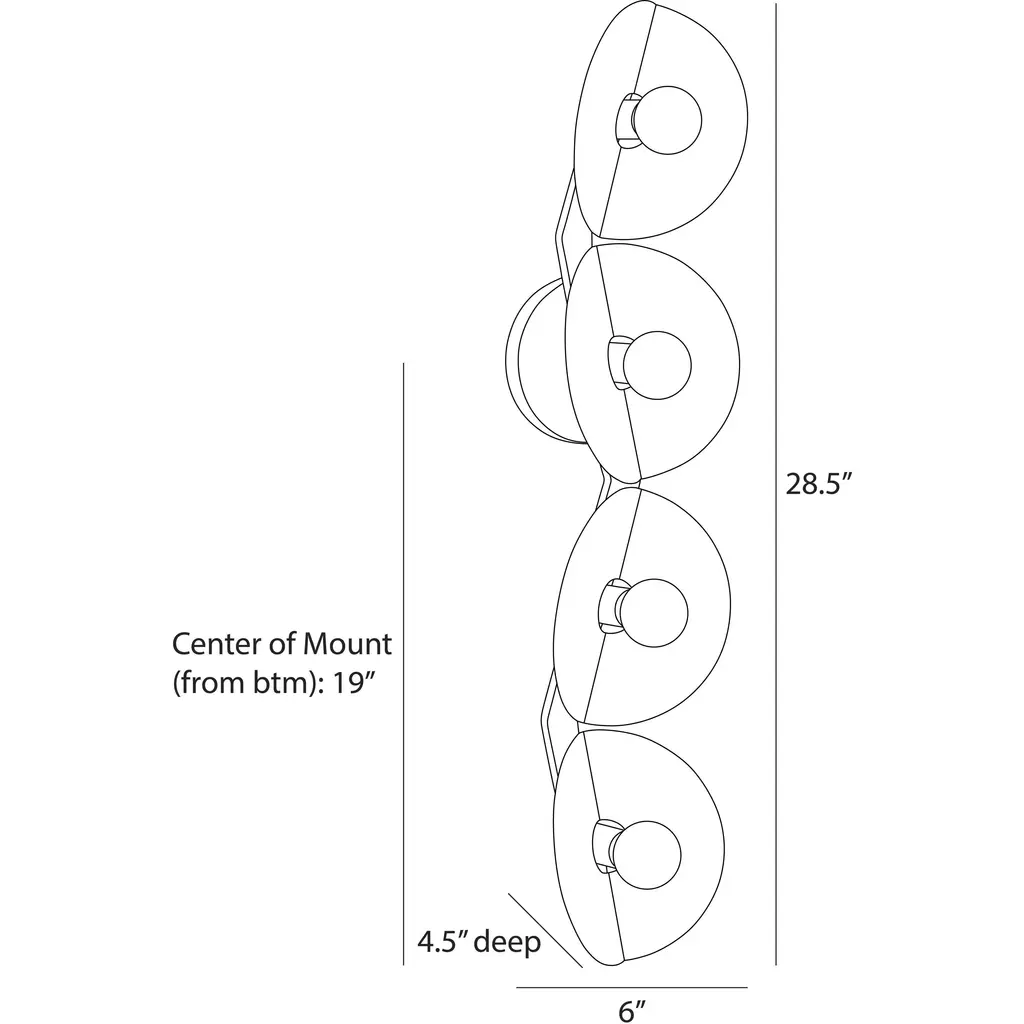 Bent metal dishes of hammered antique brass twist in alternate directions to lend a playful energy to the Itzia. This sculptural style can be mounted horizontally or vertically, giving it versatility. Finish will vary. Damp-rated, although limited covered outdoor conditions may affect finish.
