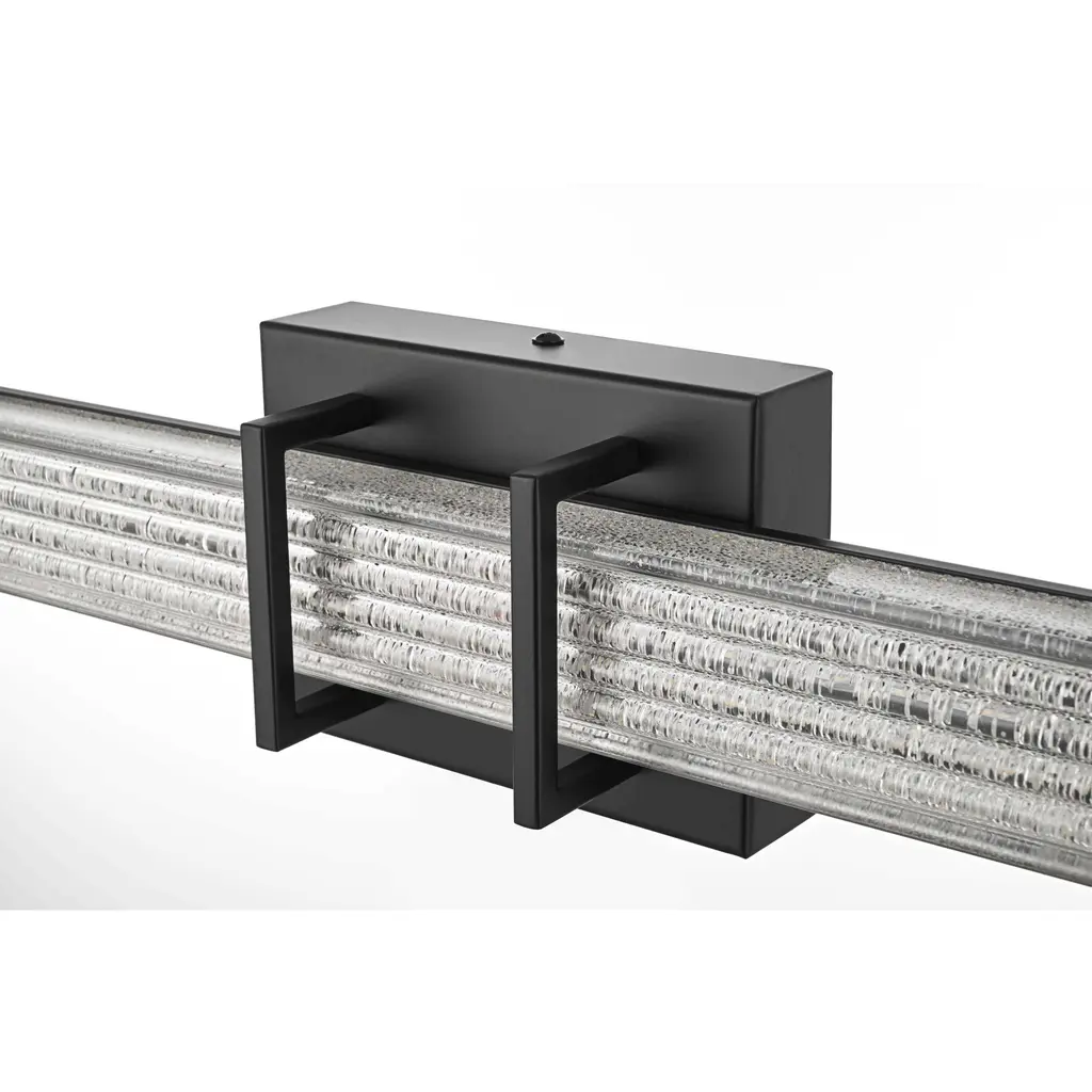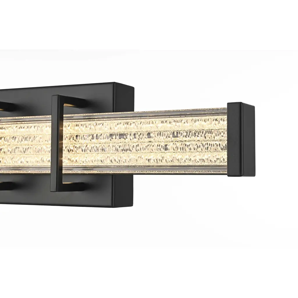Elevate your space with this captivating linear wall sconce that marries contemporary design with romantic allure. The show-stopping crackled acrylic diffuser creates a mesmerizing display of light and shadow, reminiscent of fractured crystal catching the morning sun. Suspended within a sophisticated black frame, the fixture appears to float against your wall, creating an architectural statement that's both bold and ethereal. The textured diffuser transforms ordinary light into a dramatic interplay of illumination, casting subtle patterns that bring walls to life while providing elegant ambient lighting. This modern interpretation of classic crystal lighting bridges the gap between traditional luxury and contemporary design, making it perfect for both intimate residential spaces and upscale commercial environments. Whether mounted in an entryway, above a dining table, or as part of a sophisticated lighting scheme, this fixture creates an immediate impression of refined taste and artistic sensibility. The contrast between the industrial mounting brackets and the delicate crystalline diffuser perfectly embodies modern romantic design, creating a compelling focal point that enhances any interior style.