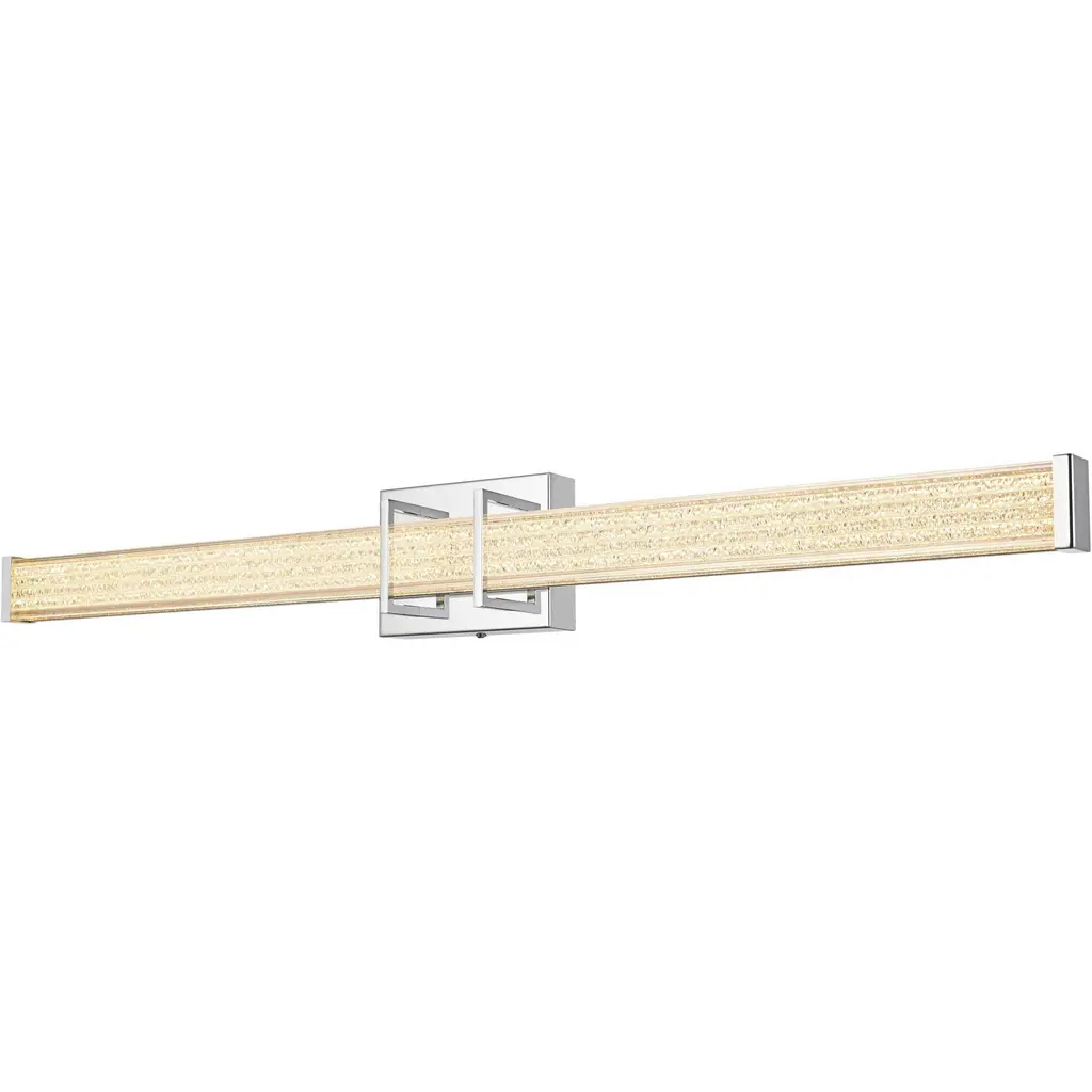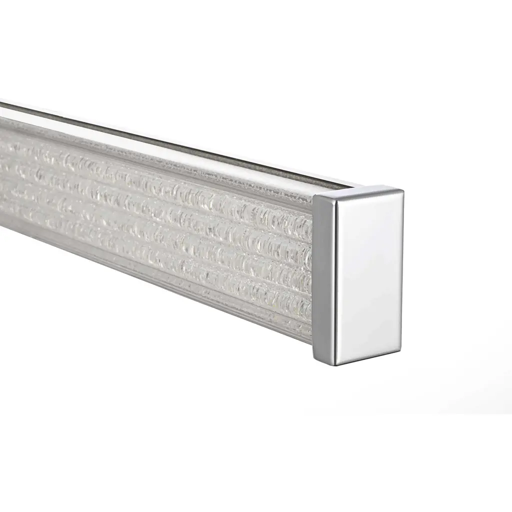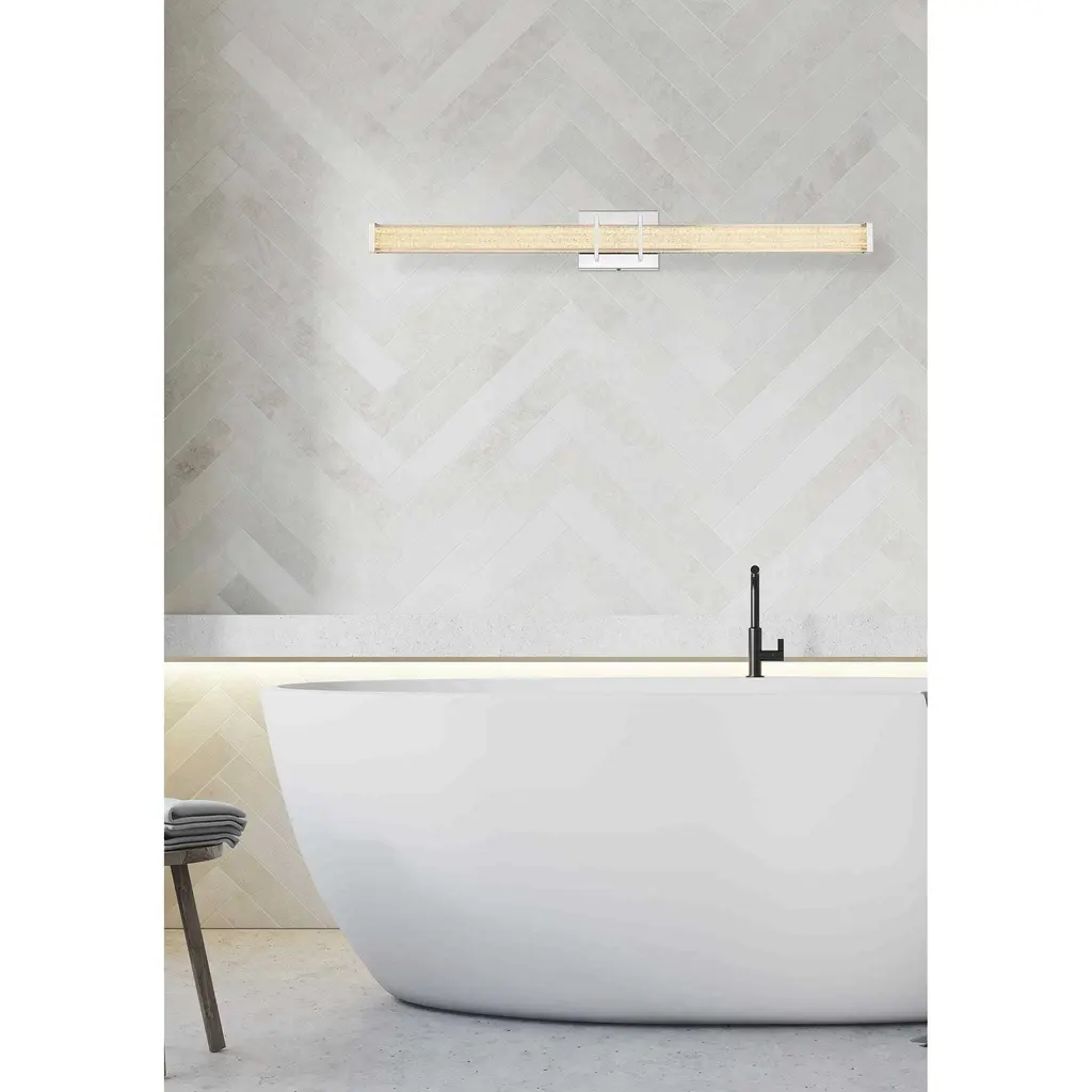 Elevate your space with this captivating linear wall sconce that marries contemporary design with romantic allure. The show-stopping crackled acrylic diffuser creates a mesmerizing display of light and shadow, reminiscent of fractured crystal catching the morning sun. Suspended within a sophisticated black frame, the fixture appears to float against your wall, creating an architectural statement that's both bold and ethereal. The textured diffuser transforms ordinary light into a dramatic interplay of illumination, casting subtle patterns that bring walls to life while providing elegant ambient lighting. This modern interpretation of classic crystal lighting bridges the gap between traditional luxury and contemporary design, making it perfect for both intimate residential spaces and upscale commercial environments. Whether mounted in an entryway, above a dining table, or as part of a sophisticated lighting scheme, this fixture creates an immediate impression of refined taste and artistic sensibility. The contrast between the industrial mounting brackets and the delicate crystalline diffuser perfectly embodies modern romantic design, creating a compelling focal point that enhances any interior style.