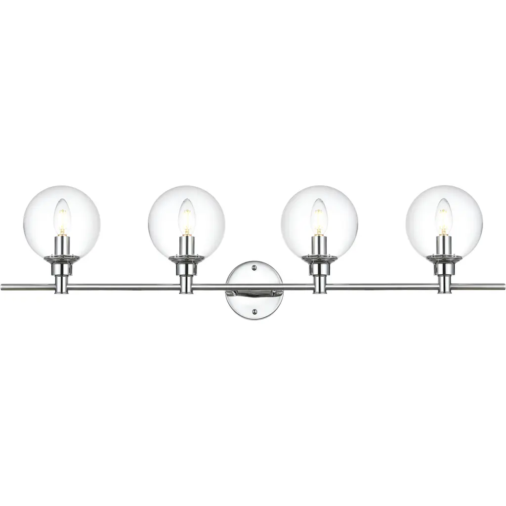 This armed sconce features a streamlined and minimalistic design that complements any space in your home. Shown with the clear glass shades, this wall sconce is versatile and can be placed in a bathroom,entry way, or hallway. Compatible with dimmers, so you'll have the right amount of light in any given time of the day. The hardwired fixture is safe to use in damp locations. Made from iron with a modern finish, it includes a round backplate and a matching arm that holds in place four 40W bulb ( sold separately). Available in multiple finishes. Can be installed as an uplight or a downlight.