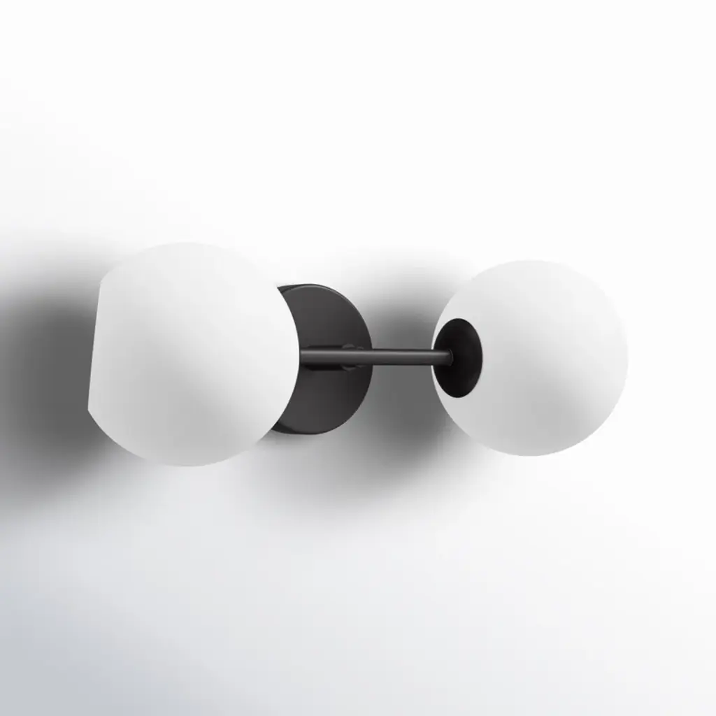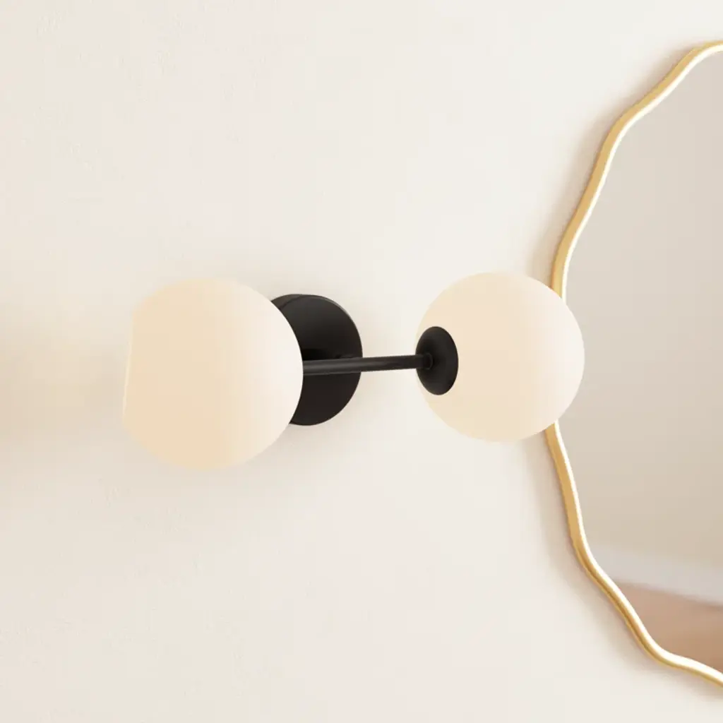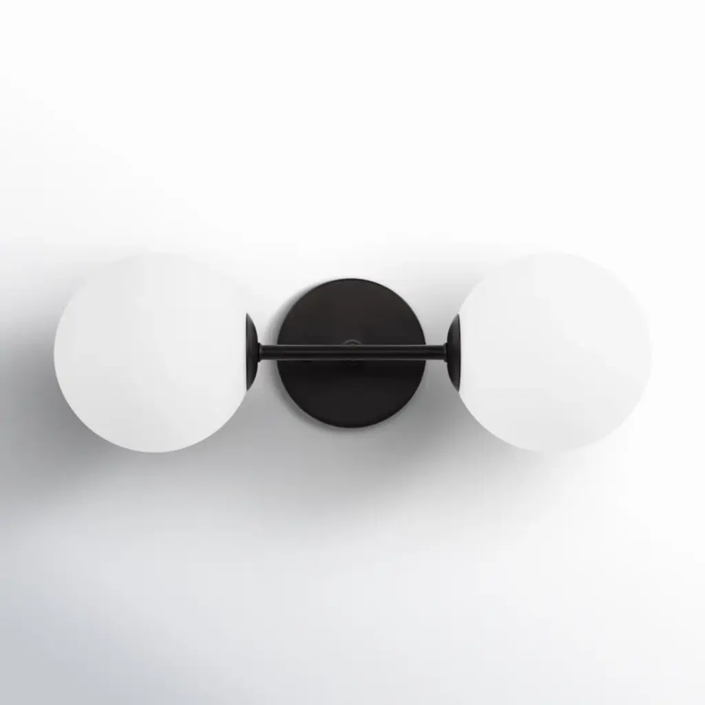 Style your home with the sleek and modern appeal of our Jaina wall sconce. Taking inspiration from mid-century modern designs, our wall light stands out with its bold geometry and streamlined profile. The striking globe shades and metal finish make our wall sconce a welcoming and versatile addition to any modern or contemporary home. It includes a white frosted glass shade to strikingly diffuse a soft and pleasant glow in your hallway, bedroom, lounge, or home office.