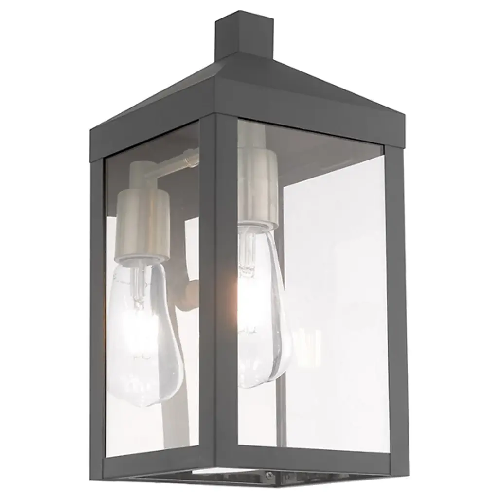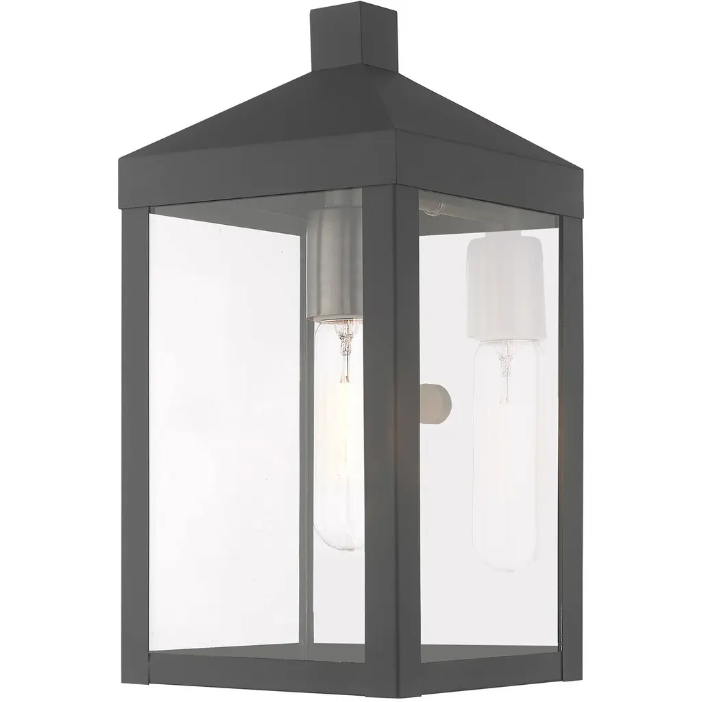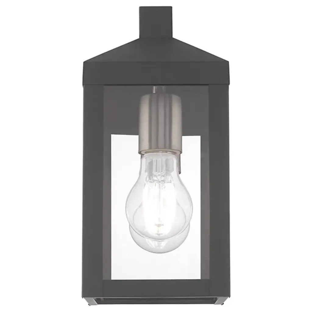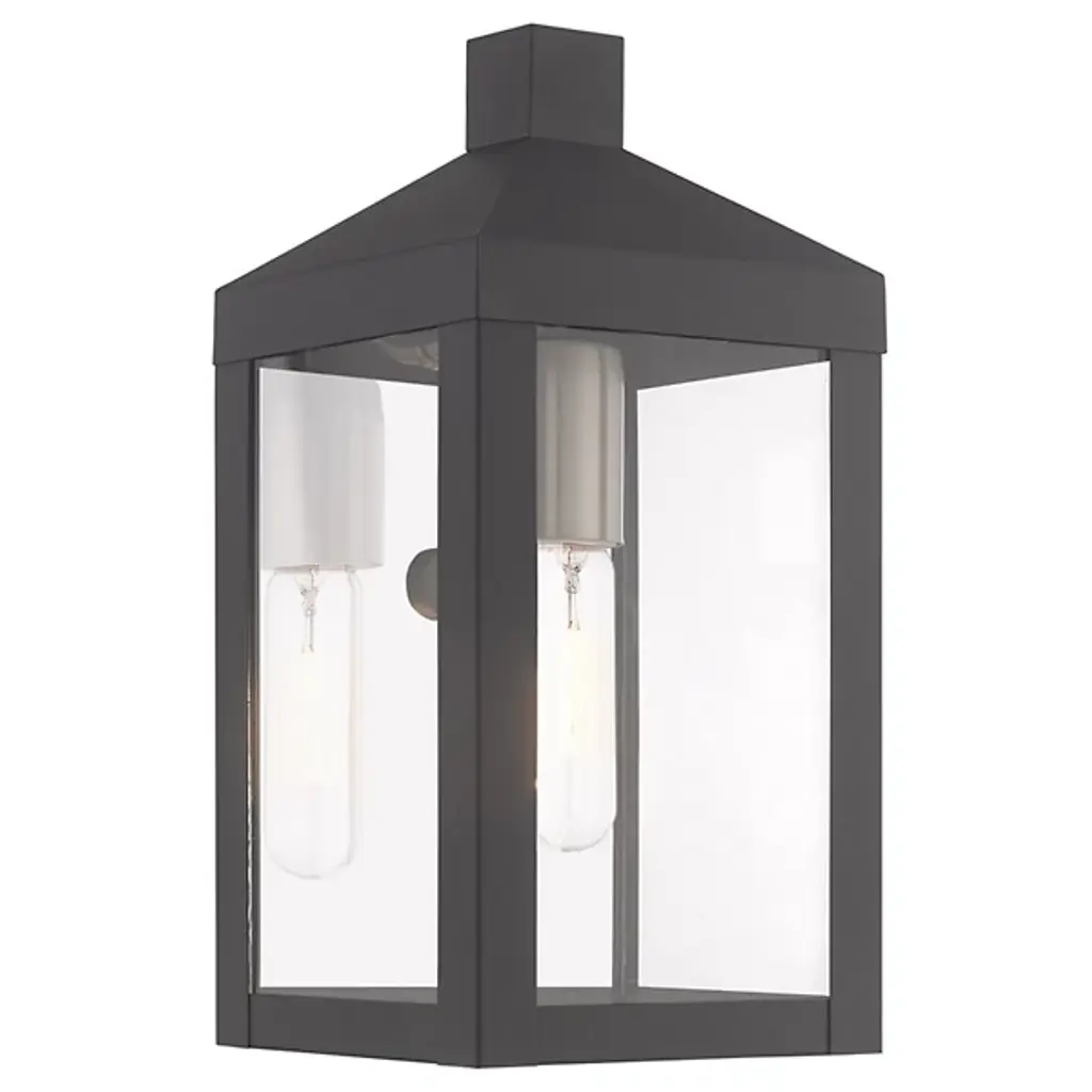 Make an exquisite addition to your exteriors with the clean lines and refined design of the James Clear Glass Outdoor Wall Sconce from Alder & Ore. This eye-catching piece appears to float in midair as it features a low-profile circular wall mount. Made from durable brass, the lantern-style sconce showcases a flaring, faceted roof with an elegant geometric finial. Surrounding clear glass panels lend to the floating sensation while protecting the lamping inside. A wet-rated, downward-facing lamp shines through the clear glass, spilling a rich pool of direct downlight and ambient light.