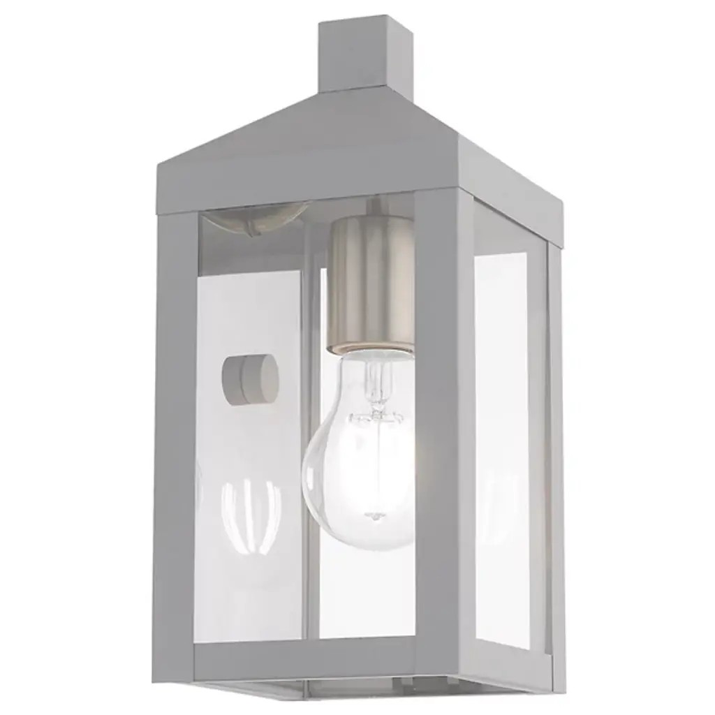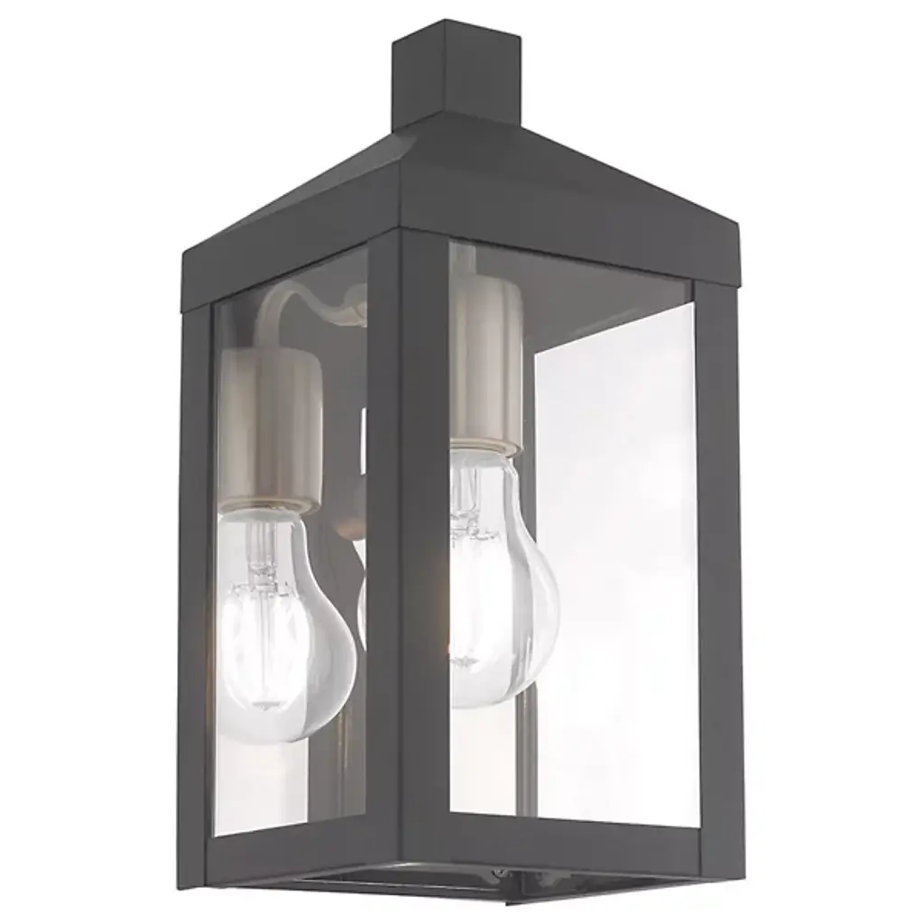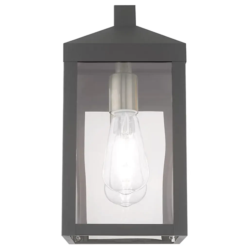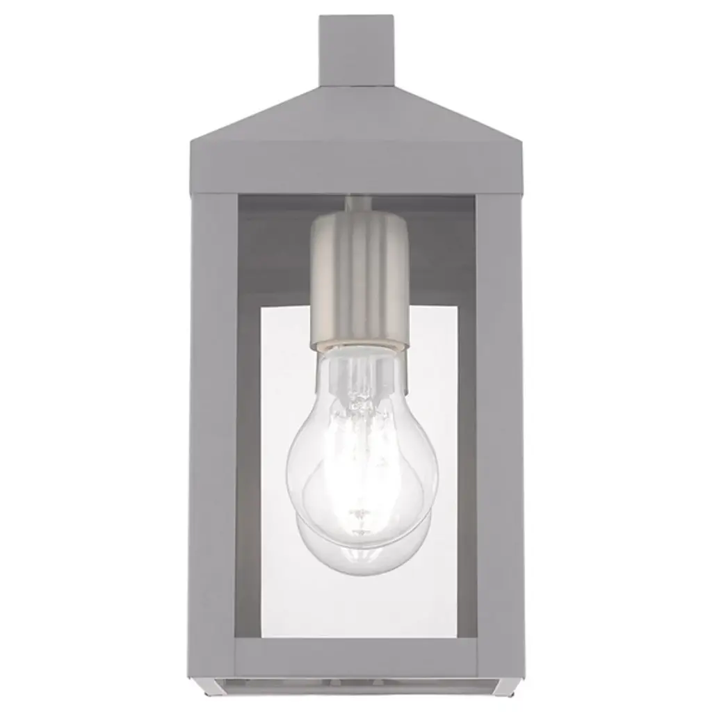 Make an exquisite addition to your exteriors with the clean lines and refined design of the James Clear Glass Outdoor Wall Sconce from Alder & Ore. This eye-catching piece appears to float in midair as it features a low-profile circular wall mount. Made from durable brass, the lantern-style sconce showcases a flaring, faceted roof with an elegant geometric finial. Surrounding clear glass panels lend to the floating sensation while protecting the lamping inside. A wet-rated, downward-facing lamp shines through the clear glass, spilling a rich pool of direct downlight and ambient light.