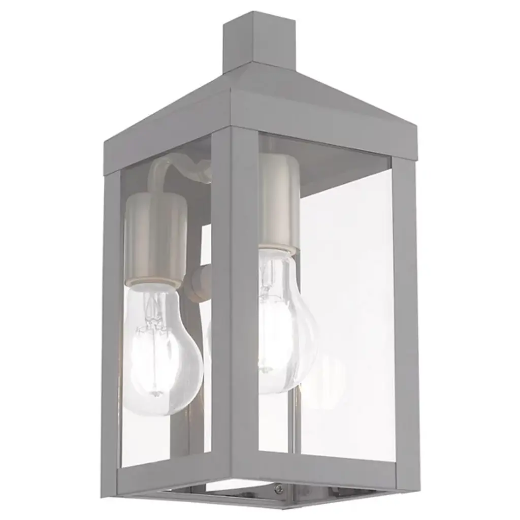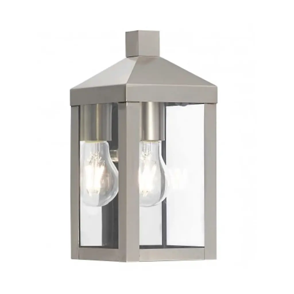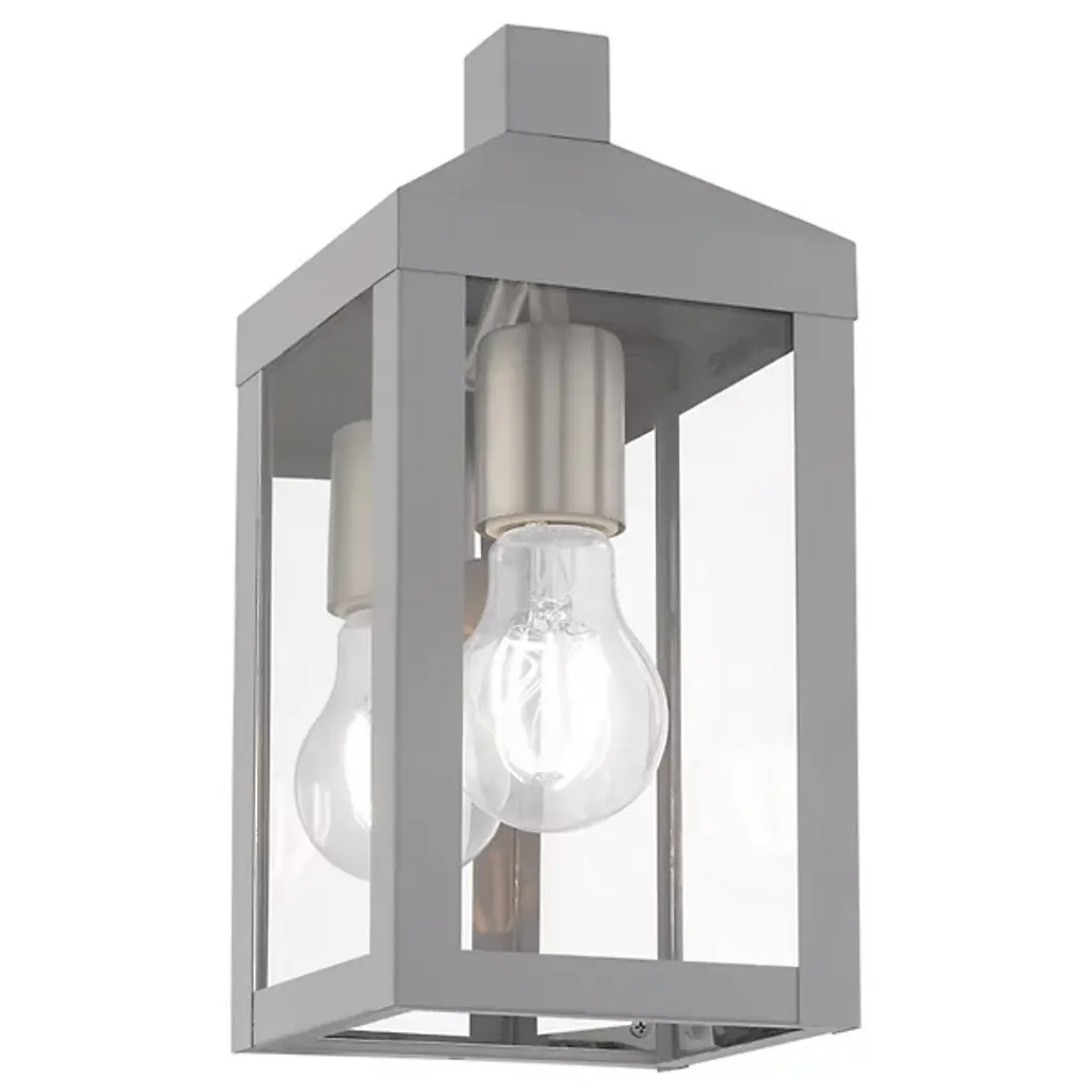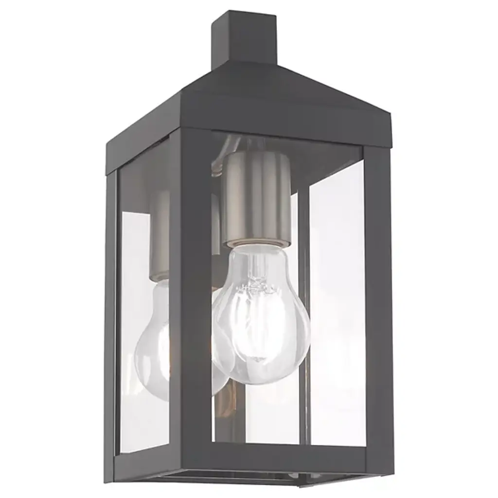 Make an exquisite addition to your exteriors with the clean lines and refined design of the James Clear Glass Outdoor Wall Sconce from Alder & Ore. This eye-catching piece appears to float in midair as it features a low-profile circular wall mount. Made from durable brass, the lantern-style sconce showcases a flaring, faceted roof with an elegant geometric finial. Surrounding clear glass panels lend to the floating sensation while protecting the lamping inside. A wet-rated, downward-facing lamp shines through the clear glass, spilling a rich pool of direct downlight and ambient light.
