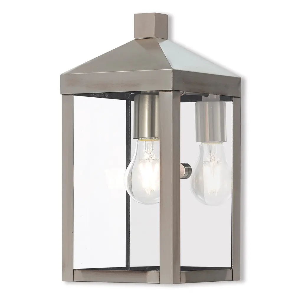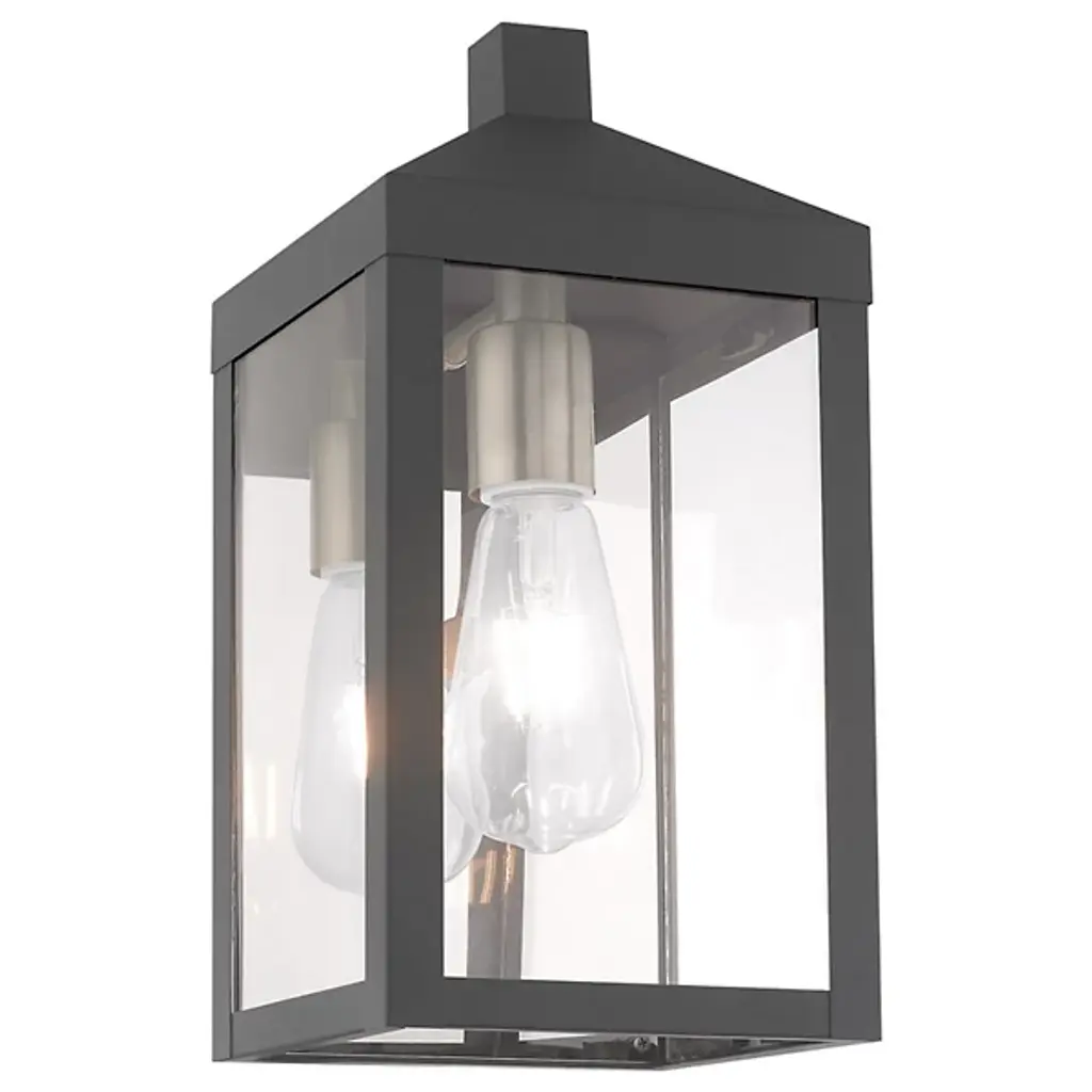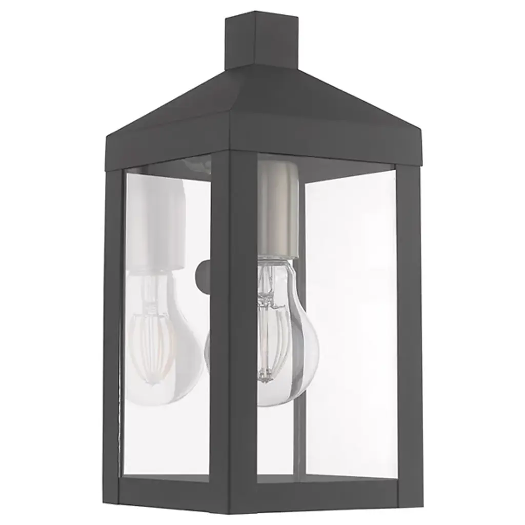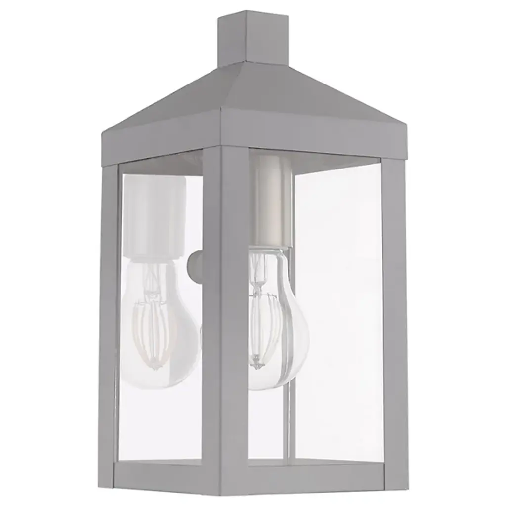 Make an exquisite addition to your exteriors with the clean lines and refined design of the James Clear Glass Outdoor Wall Sconce from Alder & Ore. This eye-catching piece appears to float in midair as it features a low-profile circular wall mount. Made from durable brass, the lantern-style sconce showcases a flaring, faceted roof with an elegant geometric finial. Surrounding clear glass panels lend to the floating sensation while protecting the lamping inside. A wet-rated, downward-facing lamp shines through the clear glass, spilling a rich pool of direct downlight and ambient light.