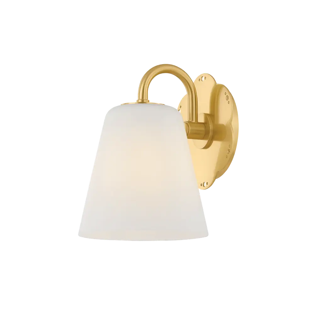 The Jamila wall sconce and pendant feature a cool, contemporary form that pivots to create directional light. The glossy white bell shade draws inspiration from the farmhouse trend while feeling completely fresh and modern. Intricate knurling on the aged brass cap is an understated detail that sets the style apart.