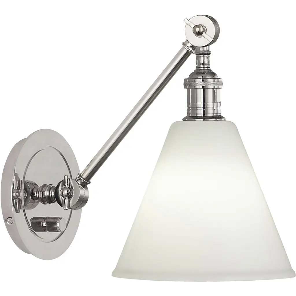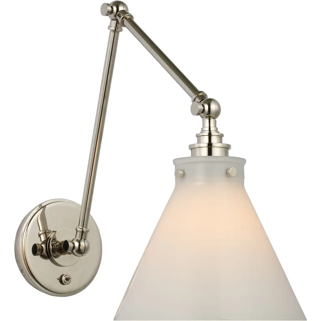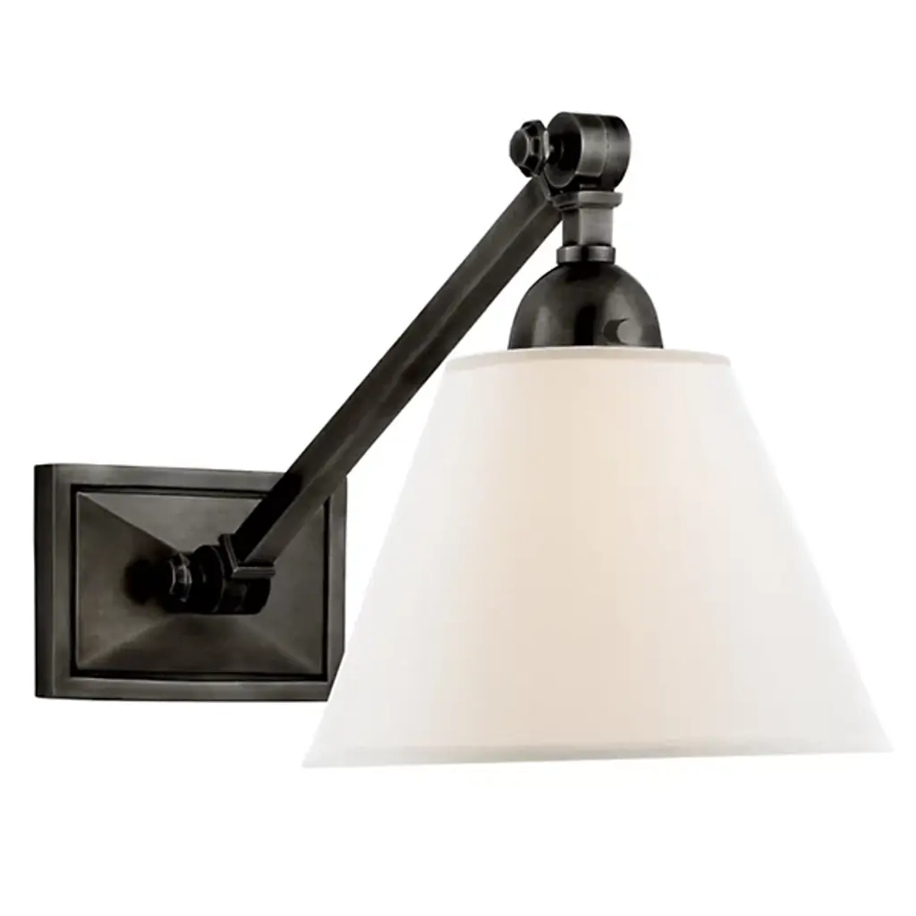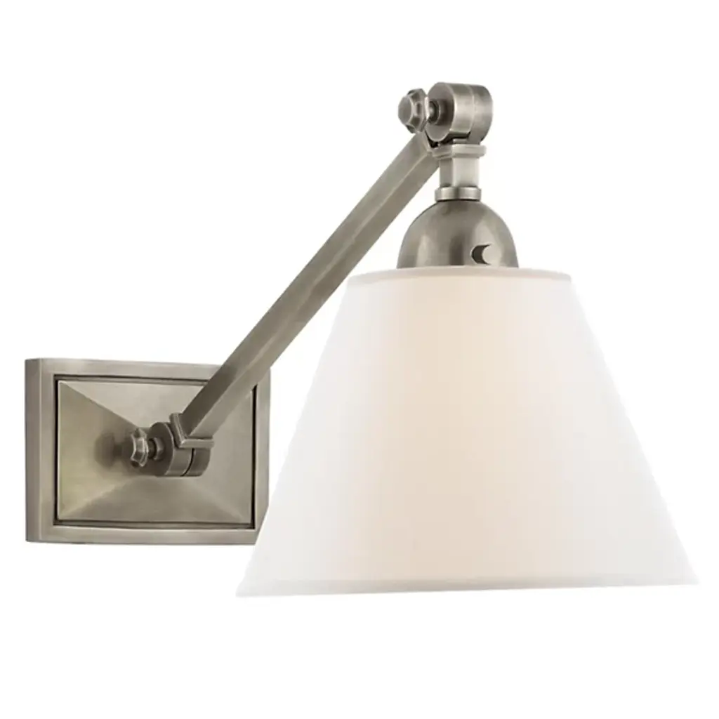 The Jane 2325 Adjustable Wall Sconce by Visual Comfort Signature, formerly known as Visual Comfort, is a handsome and contemporary piece that brightens rooms and brings a tailored touch to spaces in your home. A crisp, tapered, linen shade diffuses an even layer of illumination and is supported by an adjustable, metallic arm that is anchored to a rectangular wall plate with some geometrical detailing. With a clean and simple silhouette, this wall sconce brings a blend of form and function to your living spaces.