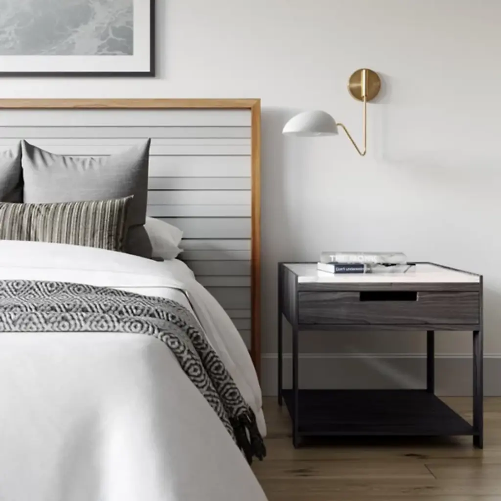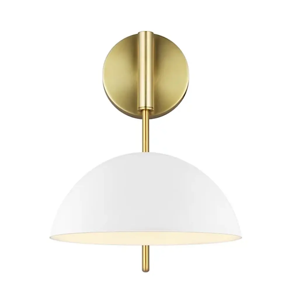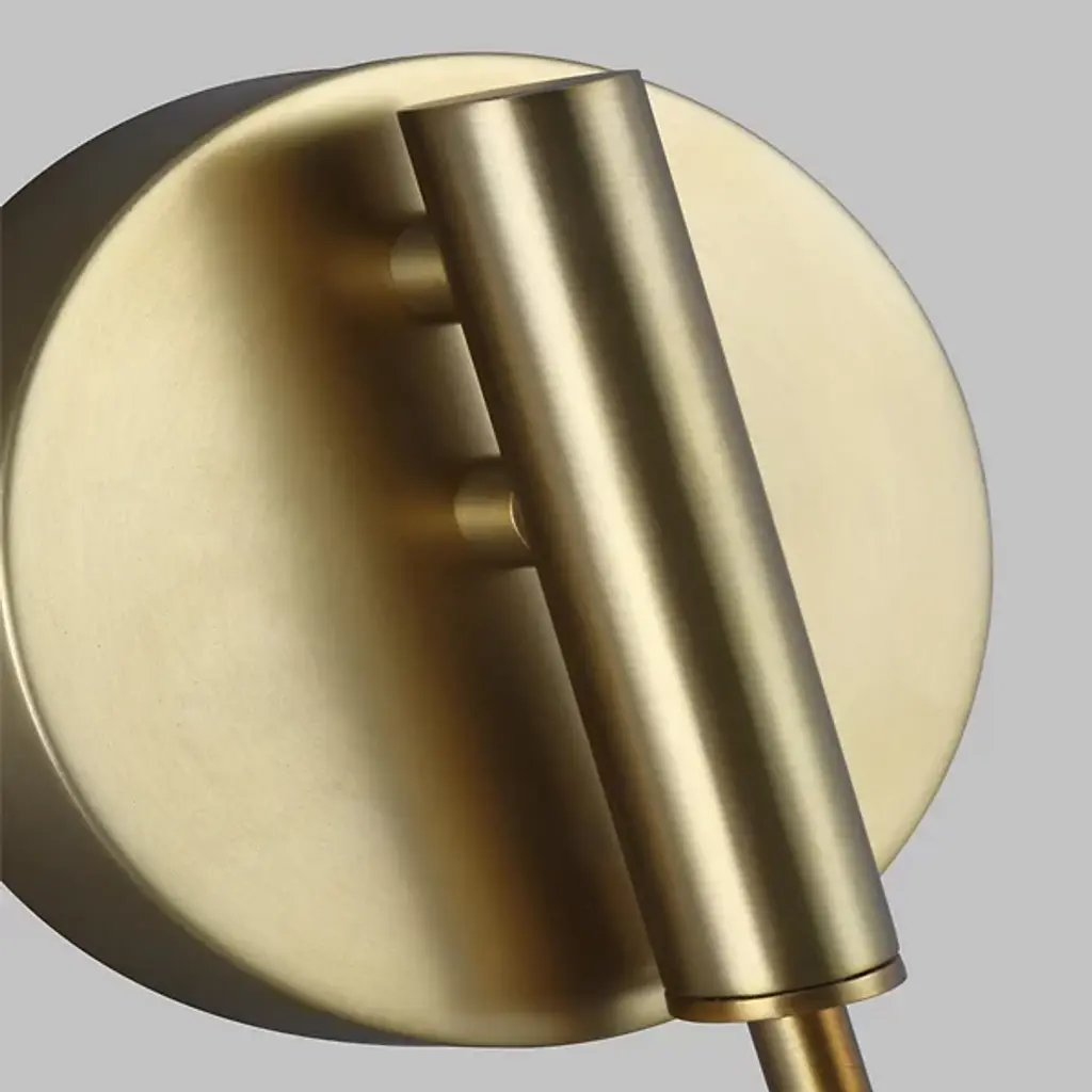 The Jane Wall Sconce by Visual Comfort Studio, formerly known as ED Ellen DeGeneres, is a tailored take on retro design. A curved swivel Steel shade is sleek and offers directional lighting wherever you need it. Smooth geometrical lines create an elongated swing arm that extends the flexibility of this fixture. Anchored with a circular wall plate, the Burnished Brass body gives this sconce a refined touch. With a unique style, this piece brings an adjustable workability to bedside tables and workspaces.