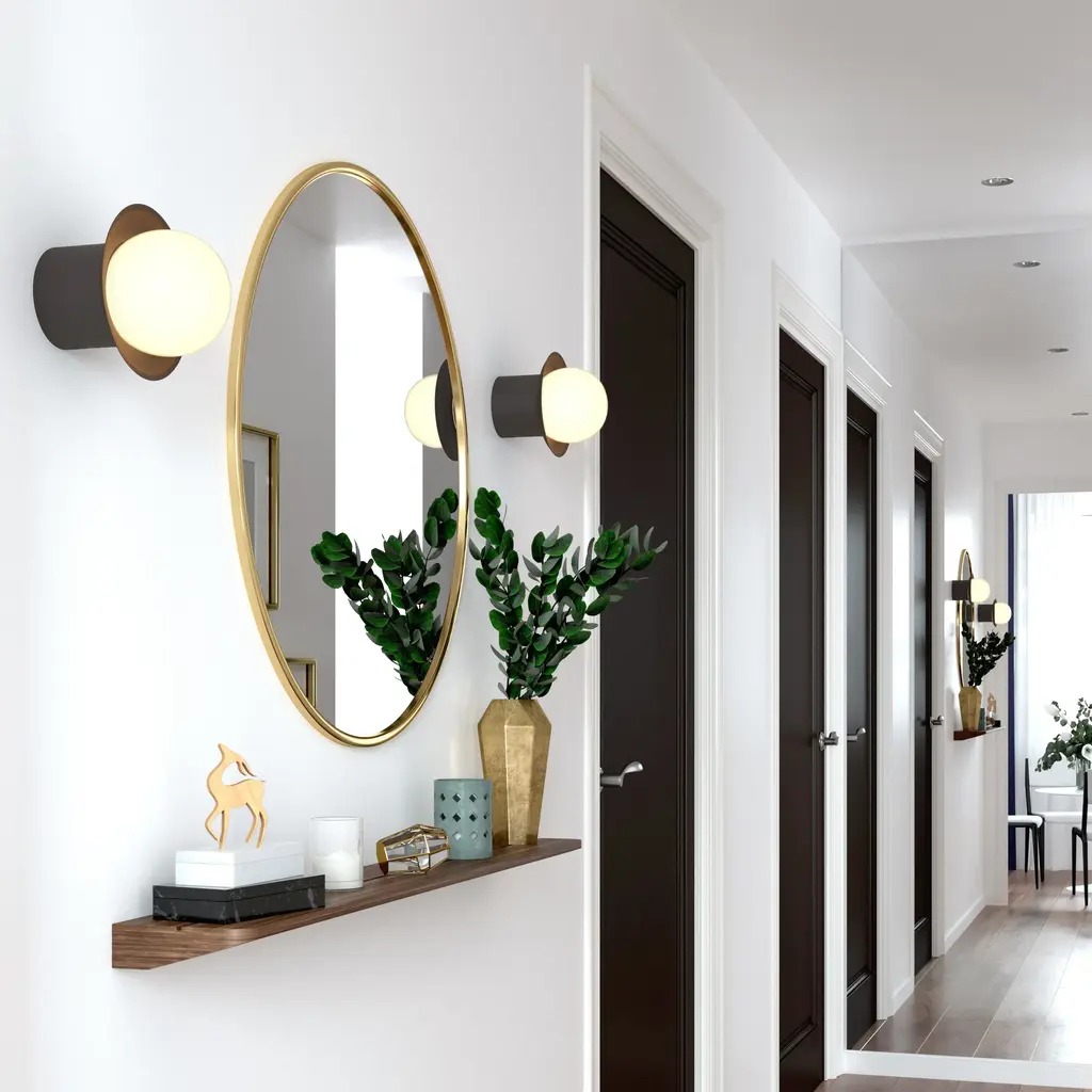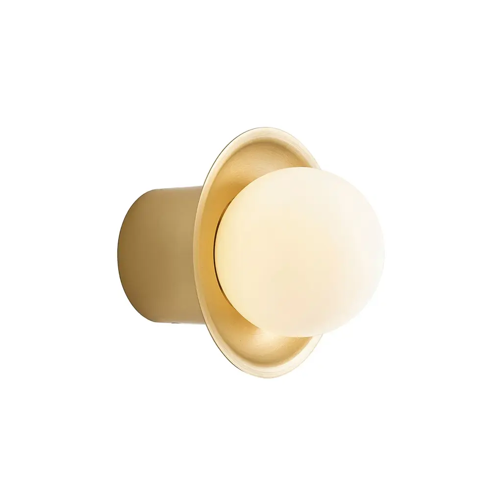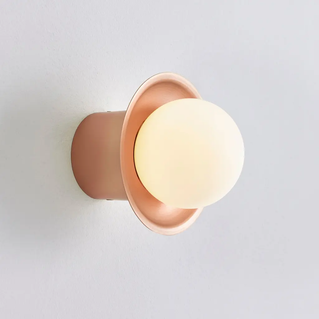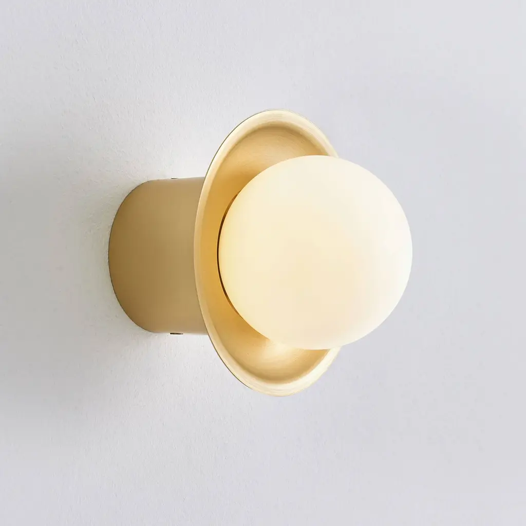 A saucer-like backplate reflects the light from Janed’s glowing opaline sphere in a smaller version to deploy singly or in multiples. In solid brass, CVL’s wall lamp is handcrafted in France with a range of luxurious metal finishes to mix or match for the mount and reflector. Designer Émilie Cathelineau completes the wall fixture with the milky mouth-blown globe to gently diffuse its warm LED illumination.