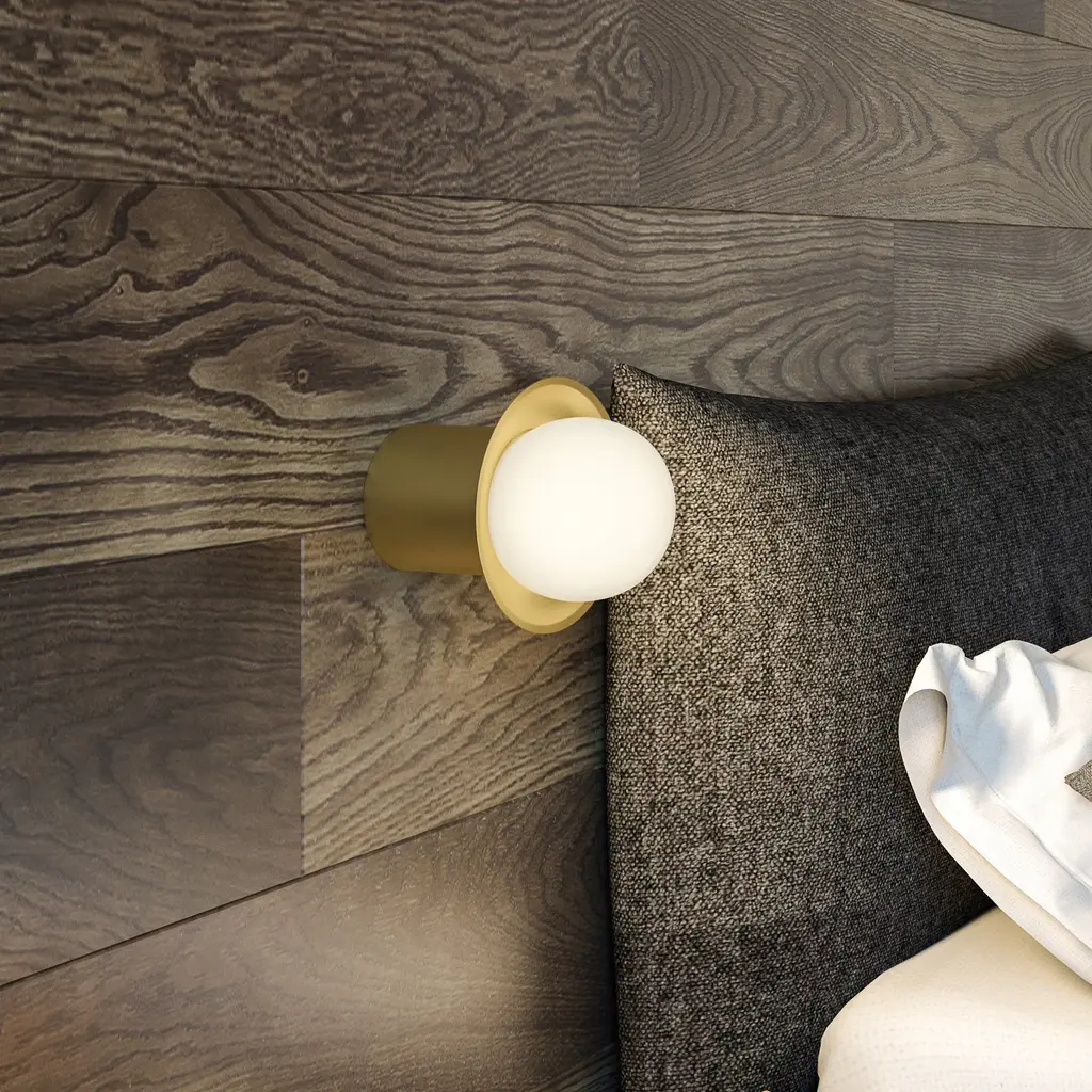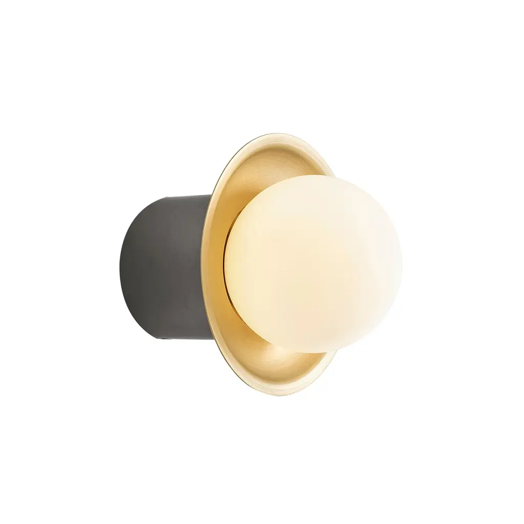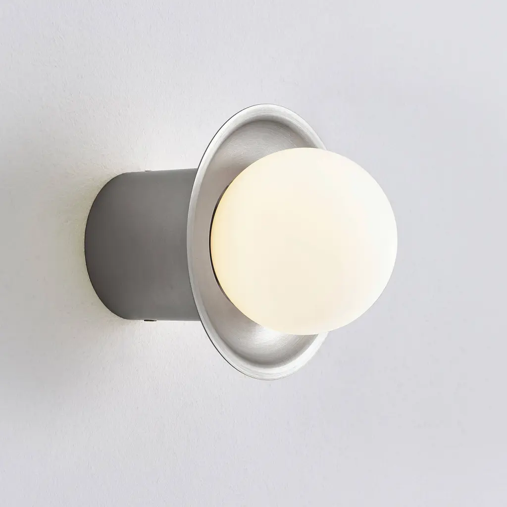 A saucer-like backplate reflects the light from Janed’s glowing opaline sphere in a smaller version to deploy singly or in multiples. In solid brass, CVL’s wall lamp is handcrafted in France with a range of luxurious metal finishes to mix or match for the mount and reflector. Designer Émilie Cathelineau completes the wall fixture with the milky mouth-blown globe to gently diffuse its warm LED illumination.