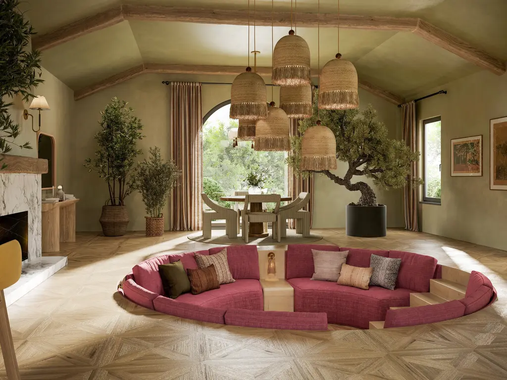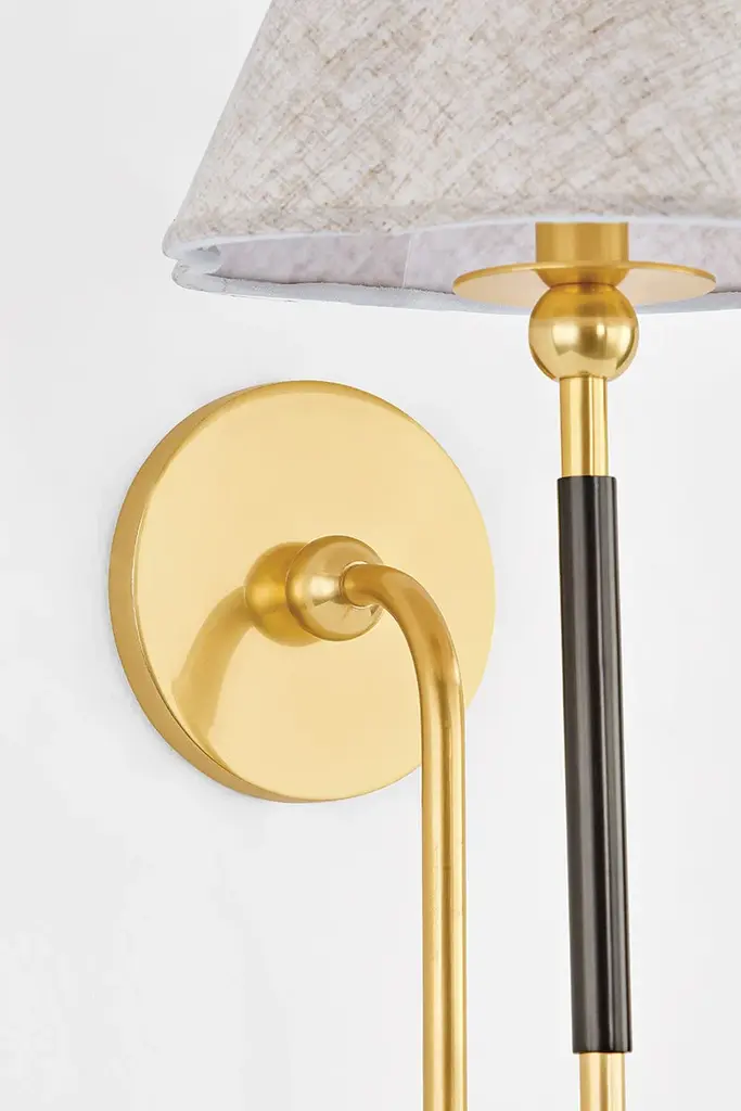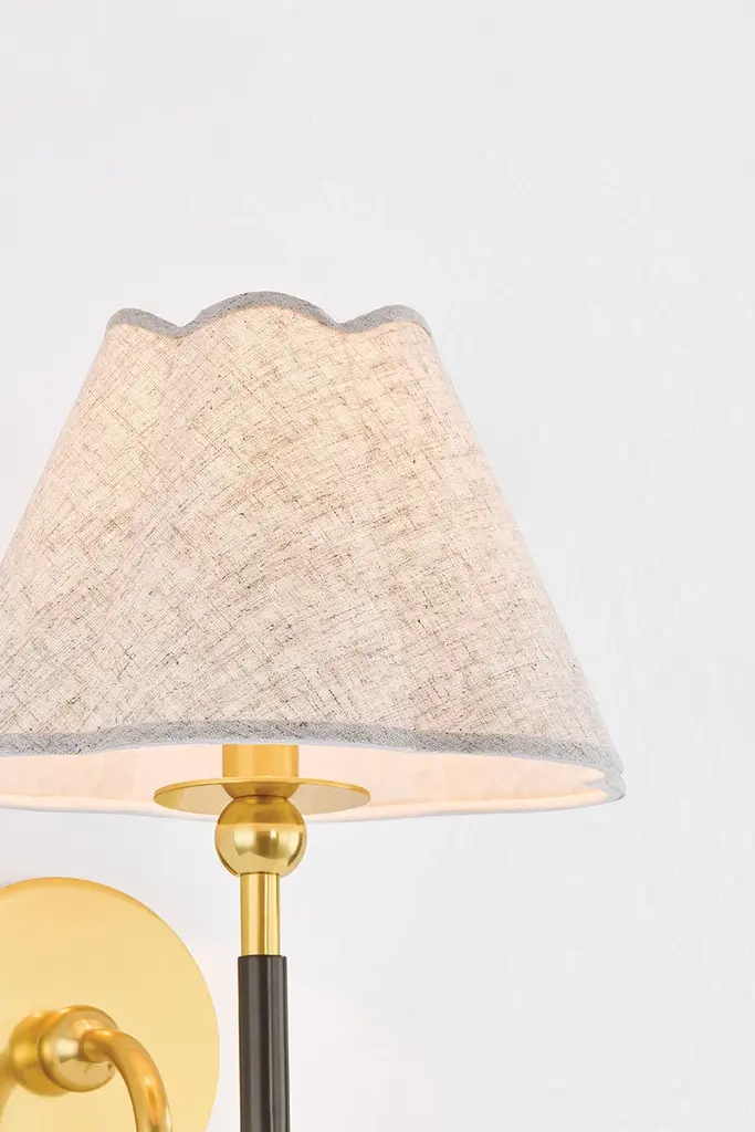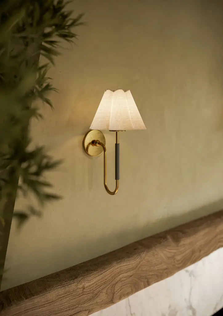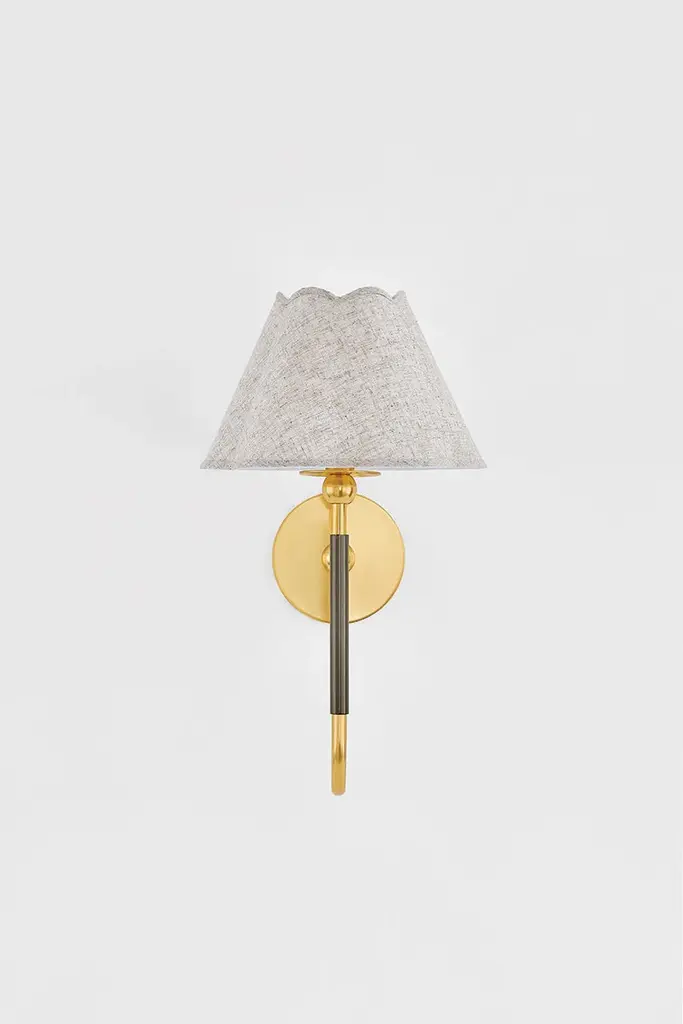The Janie family updates a traditional framework with contemporary silhouettes and an unexpected mix of materials, making it ideal for both classic and modern spaces. Scalloped shades cast a softly diffused light, creating a subtle, curved shadow. The contrasting True Bronze sleeve against the Aged Brass frame accentuates Janie’s fresh, re-imagined form. Designed to be layered together, these fixtures are designed in honor of Mandy’s beloved family of in-laws.