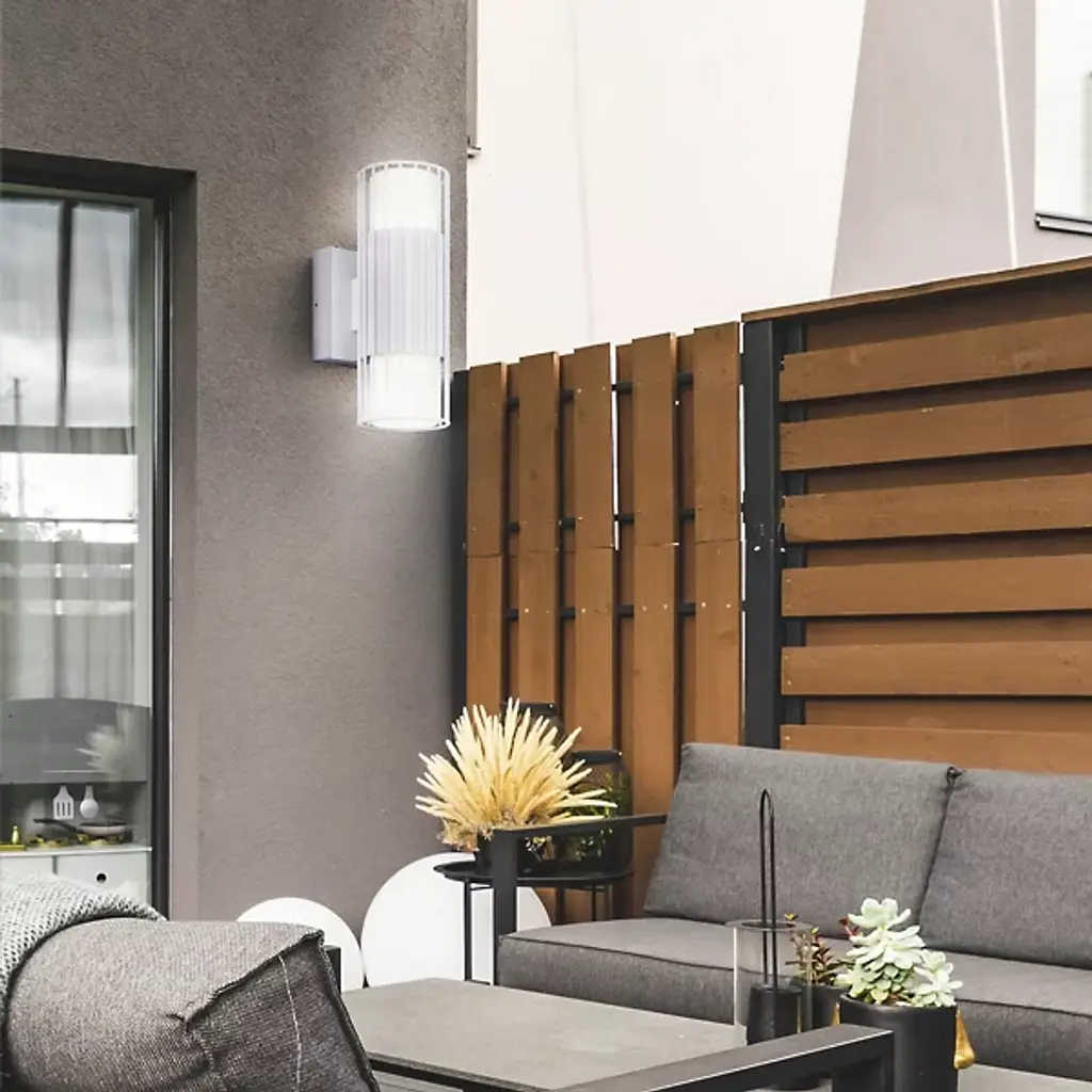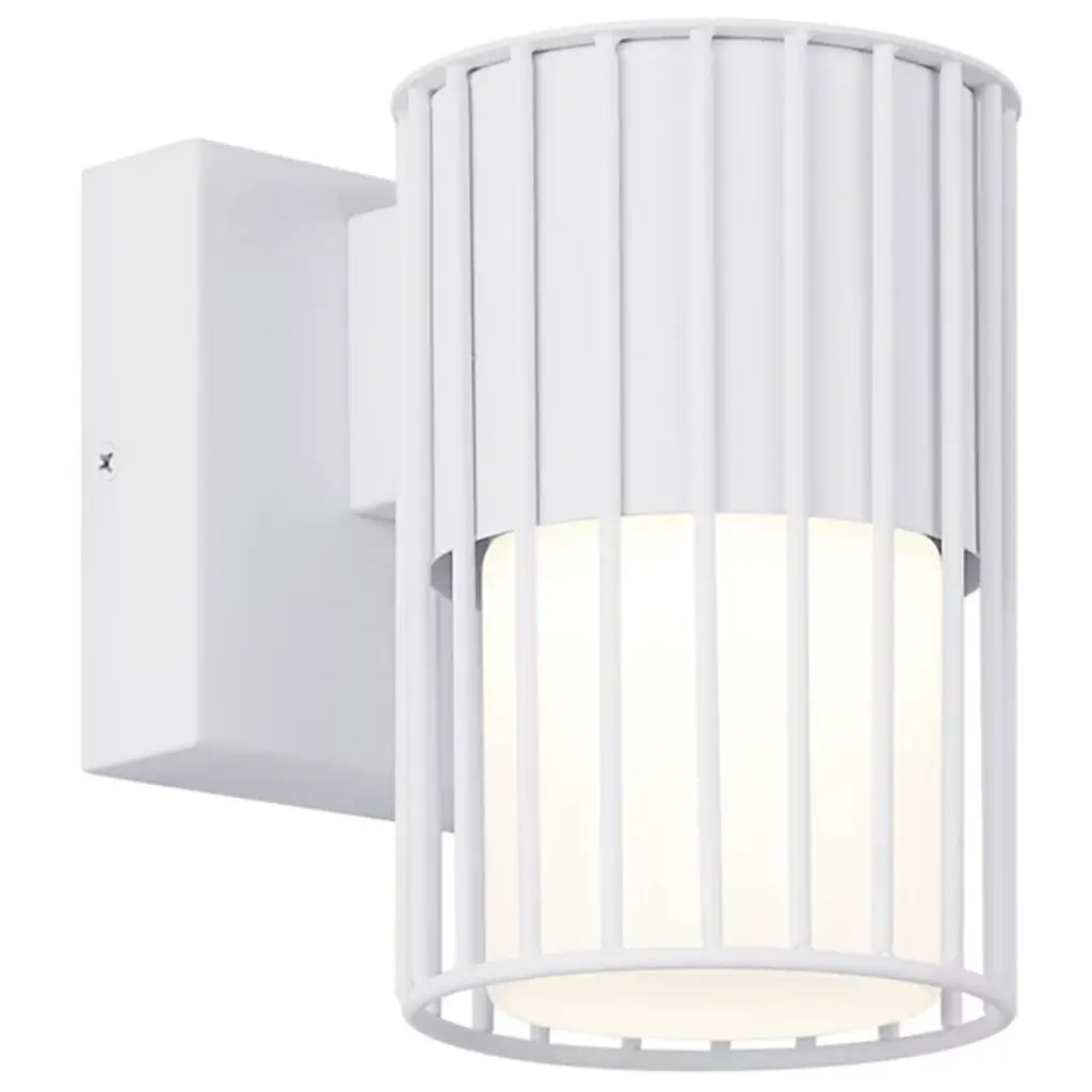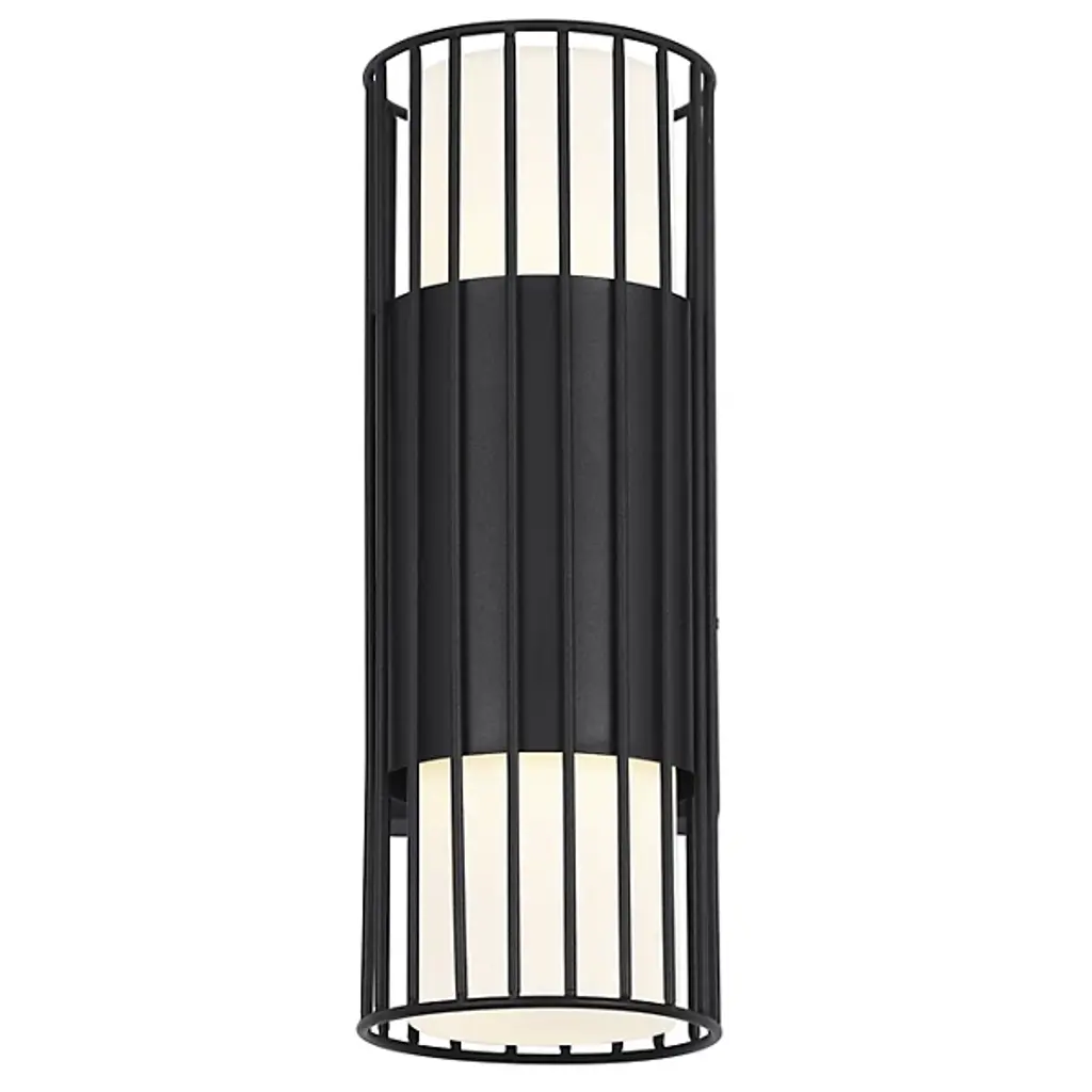 The Javon Tall Outdoor LED Wall Sconce from Canarm blends modern design with functional outdoor lighting. Its elongated cylindrical frame features an open metal shade with vertical rods emerging from above and below, allowing the light to cast subtle shadows. Inside, an opal glass diffuser at each end softens the glow, creating a balanced, inviting ambiance. Equipped with wet-listed integrated LEDs, this sconce also features a built-in 3CCT switch that lets you select from three color temperatures for customizable lighting.