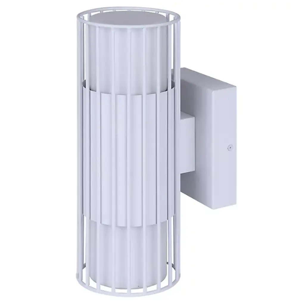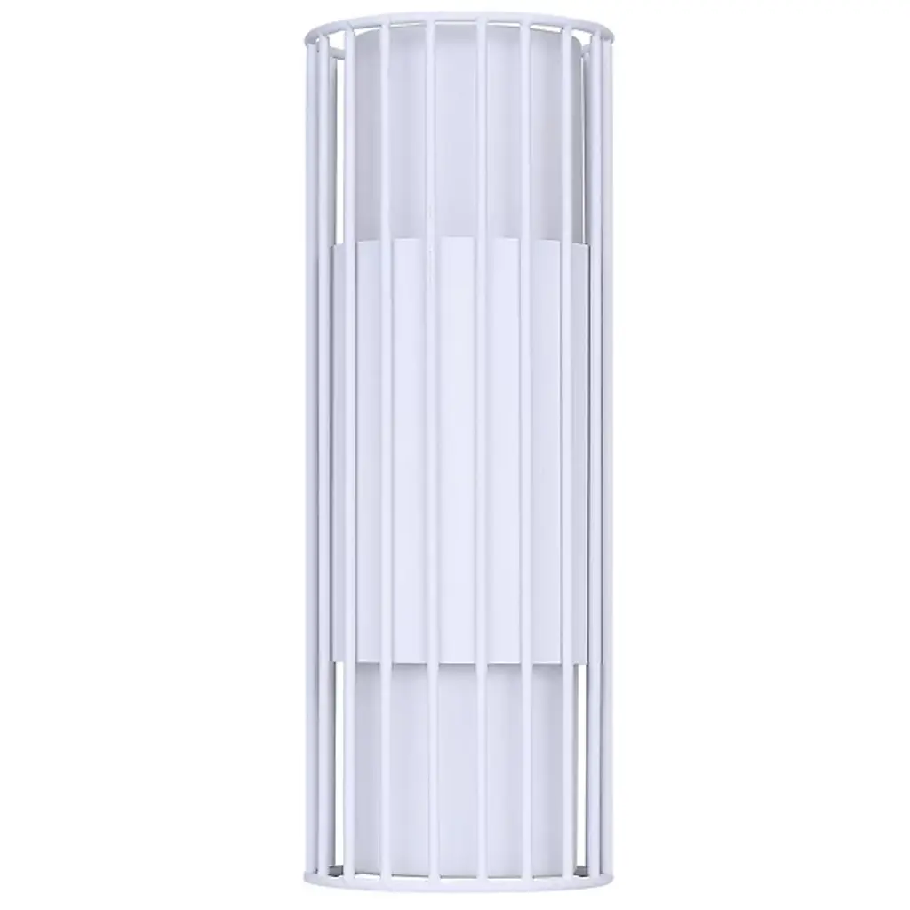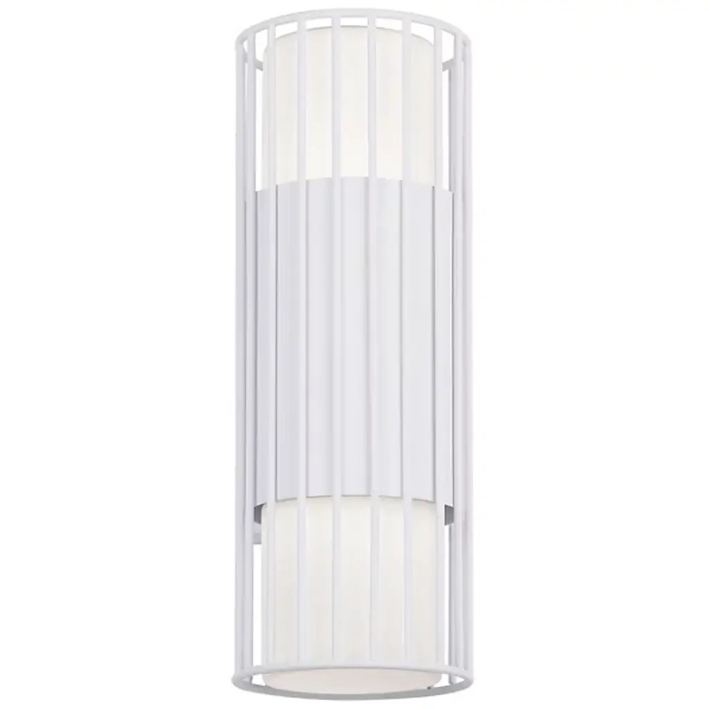 The Javon Tall Outdoor LED Wall Sconce from Canarm blends modern design with functional outdoor lighting. Its elongated cylindrical frame features an open metal shade with vertical rods emerging from above and below, allowing the light to cast subtle shadows. Inside, an opal glass diffuser at each end softens the glow, creating a balanced, inviting ambiance. Equipped with wet-listed integrated LEDs, this sconce also features a built-in 3CCT switch that lets you select from three color temperatures for customizable lighting.