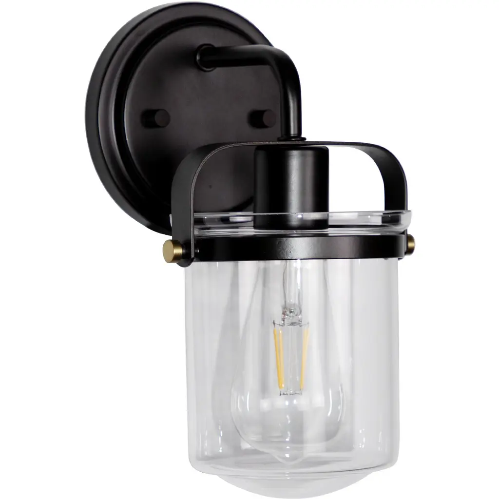 Sophisticated and refined, with a touch of industrialized style. Jaxon offers a robust metal frame finished in a beautiful hand painted Vintage Bronze finish with Old Satin Brass accents paired with a closed bottom clear glass shade. Minimalistic, yet positively intriguing.