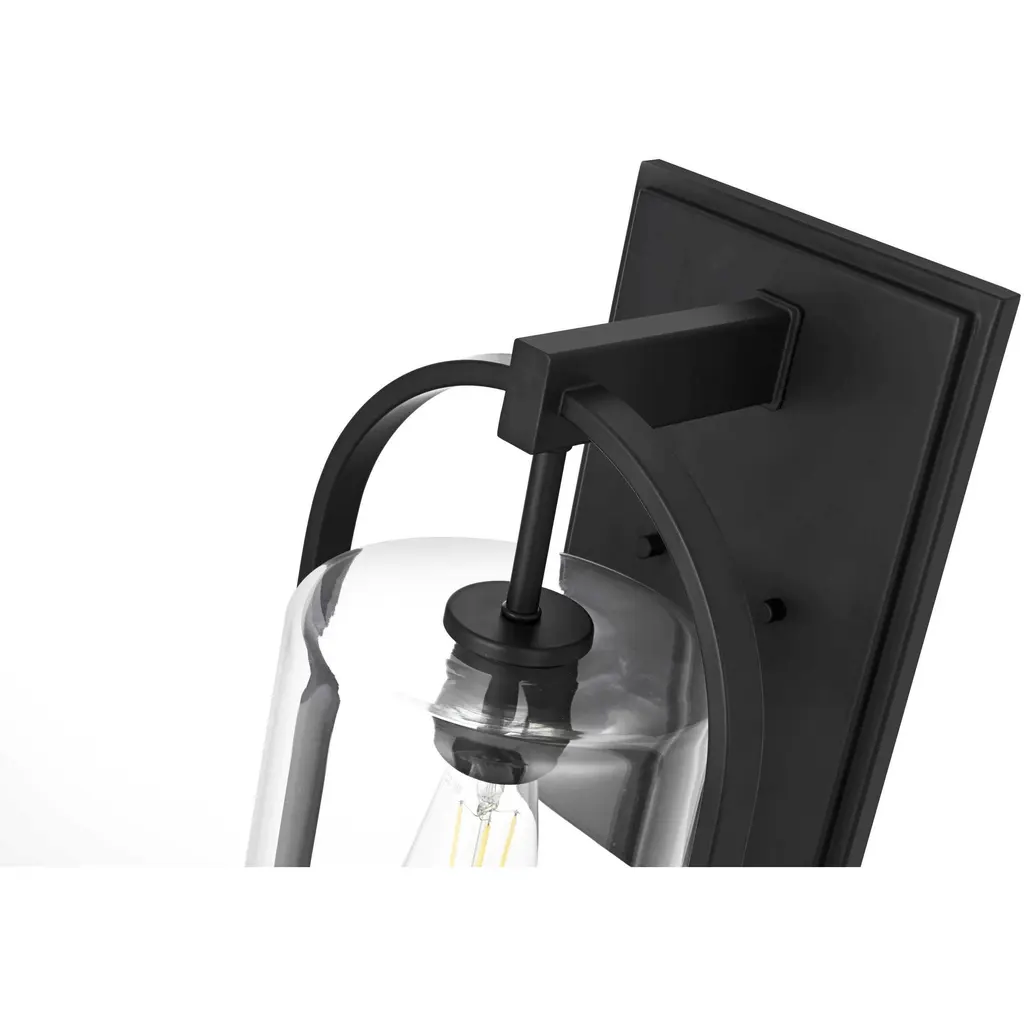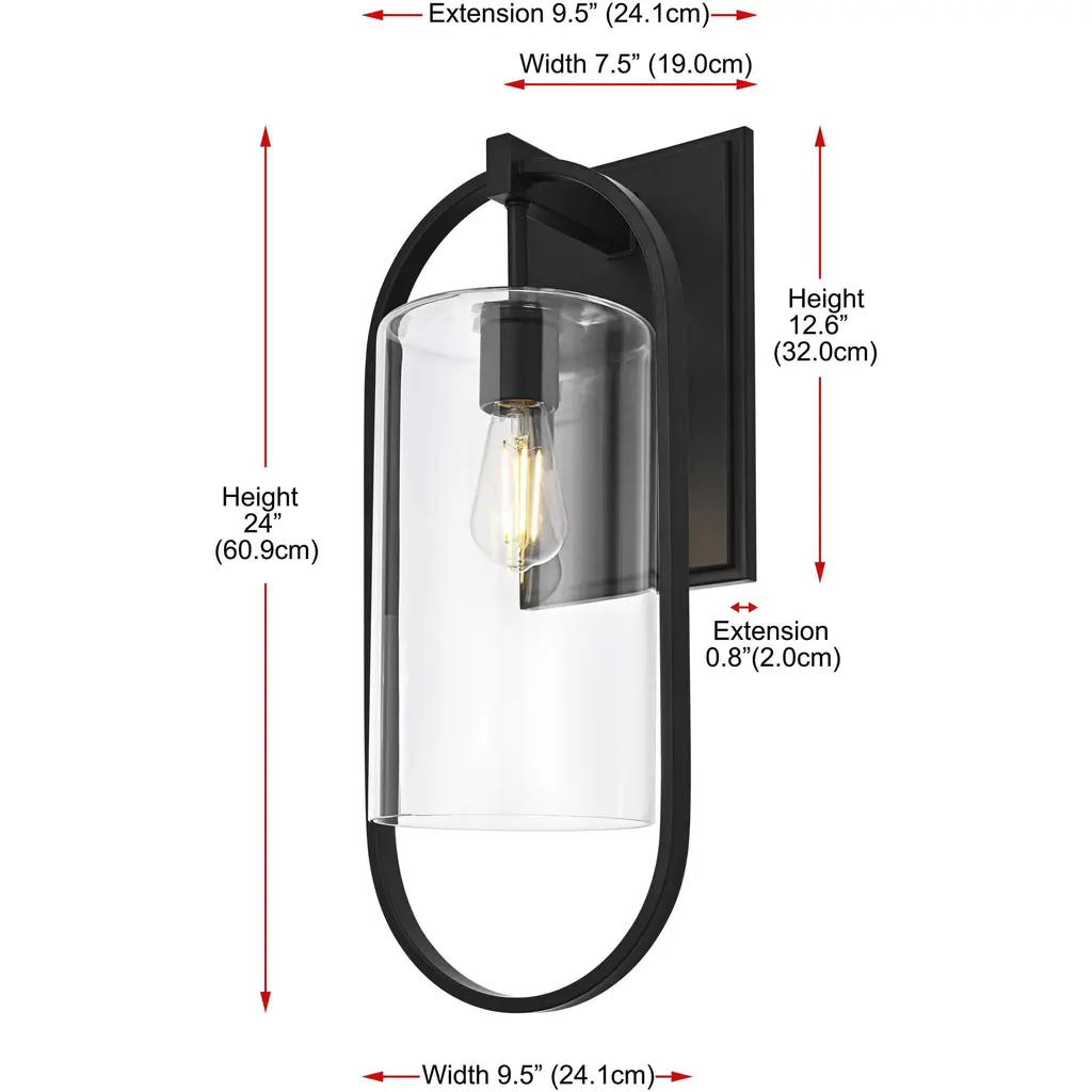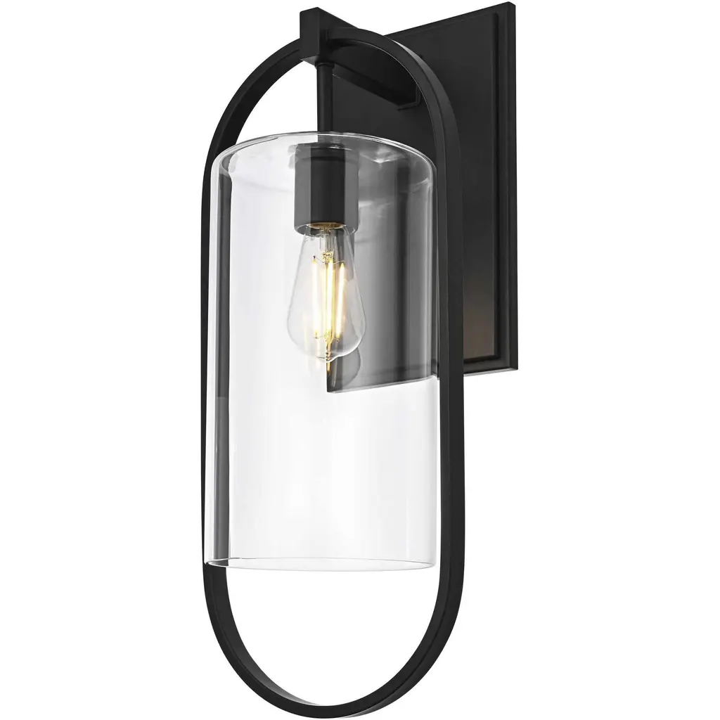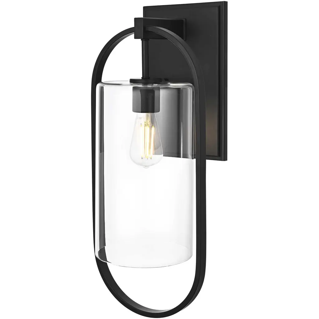 Enhance outdoor spaces with a wall sconce that redefines modern design through its sculptural form and clean-lined structure. A smooth, matte black oval frame encircles a crystal-clear glass cylinder, creating a stunning floating effect that showcases the light within. The open-bottom design allows effortless bulb replacement while maximizing illumination, making it ideal for entryways, patios, and garage exteriors. The E26 socket (bulb not included) offers flexibility to choose the perfect bulb type, whether a vintage Edison for added character or an energy-efficient LED for crisp brightness. Built to endure the elements with a wet-rated construction, this striking wall light delivers both form and function, elevating outdoor spaces with contemporary elegance and luminous brilliance.