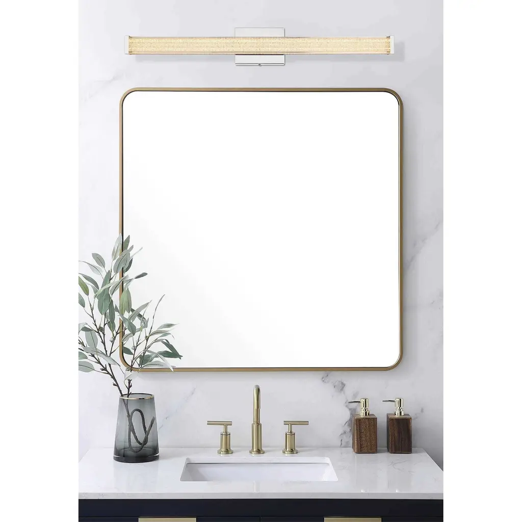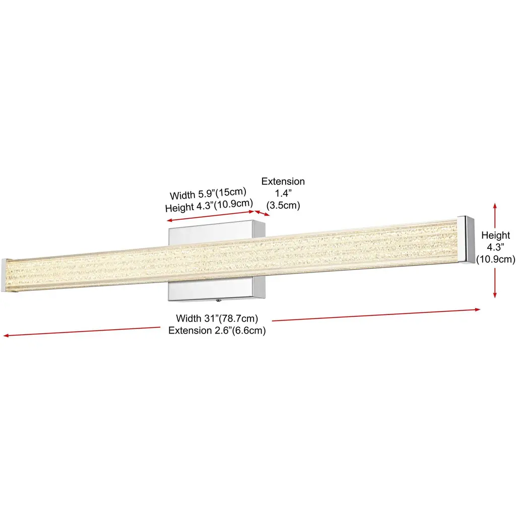 Experience the perfect fusion of form and function with our versatile LED linear wall sconce. The unique crackled acrylic diffuser transforms light into an artistic display, while the tri-color temperature settings provide complete control over your environment's ambiance. Available in four lengths and three distinguished finishes, this fixture adapts to any design vision while delivering efficient, beautiful illumination. Whether mounted horizontally above a vanity or vertically flanking a mirror, this hardwired fixture combines sophisticated style with practical functionality, making it an ideal choice for discerning designers and homeowners alike.