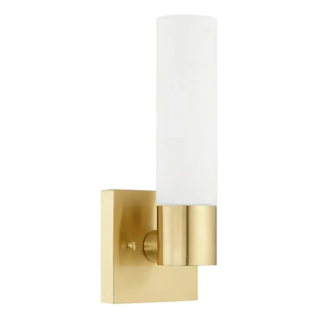 The Jayna Cylindrical Wall Sconce by Alder & Ore is a sleek, simple, contemporary way to bring a bright touch to spaces. Casting a soft, flattering layer of illumination that filters through a cylindrical, etched glass shade, this design is anchored by a square backplate and simple base that feature a lovely finish. Effortless and elegant, this piece is at home in a wide range of spaces, bringing a beautiful blend of form and function to its surroundings.