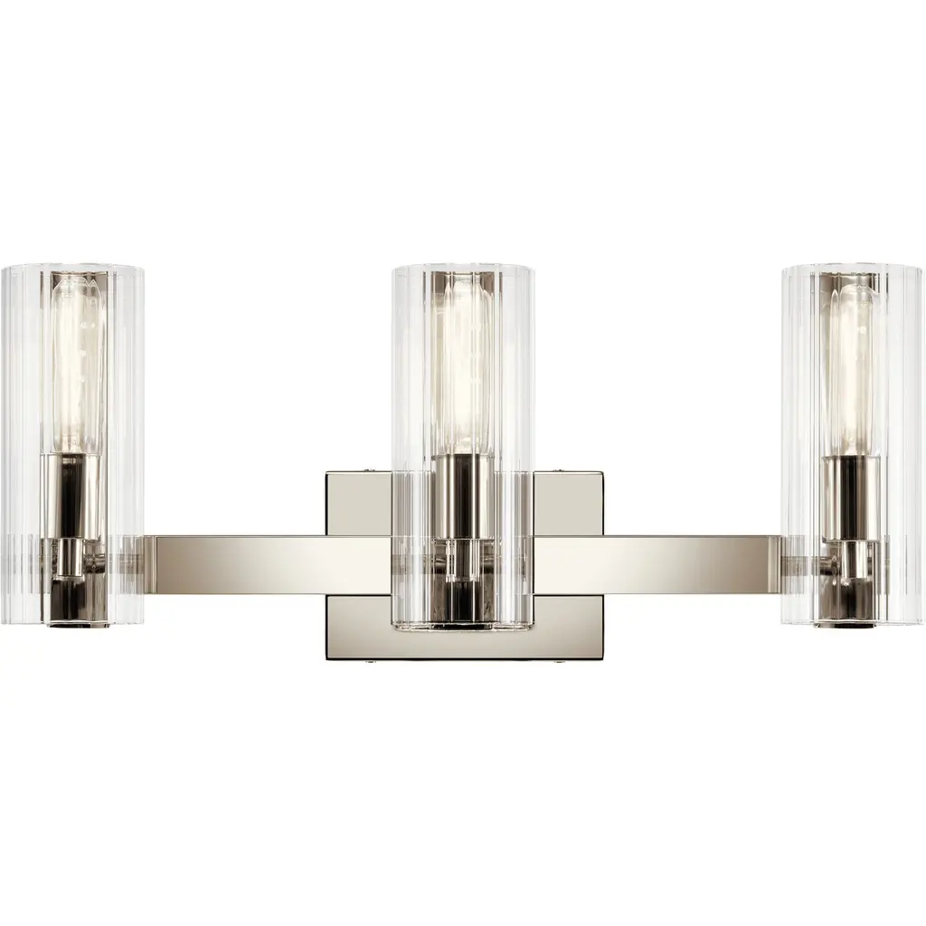 Jemsa 22.75 Inch 3 Light Vanity with Clear Fluted Glass in Polished Nickel